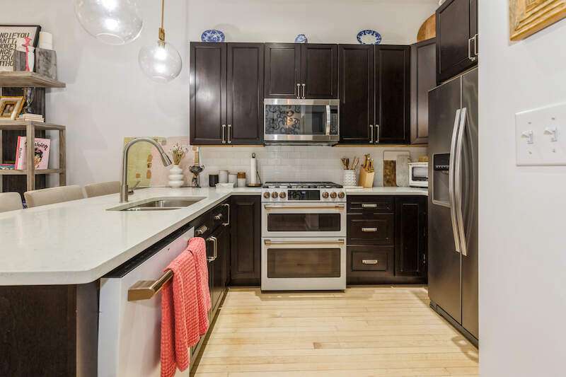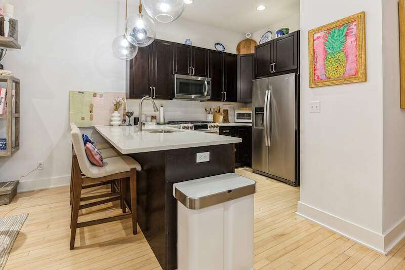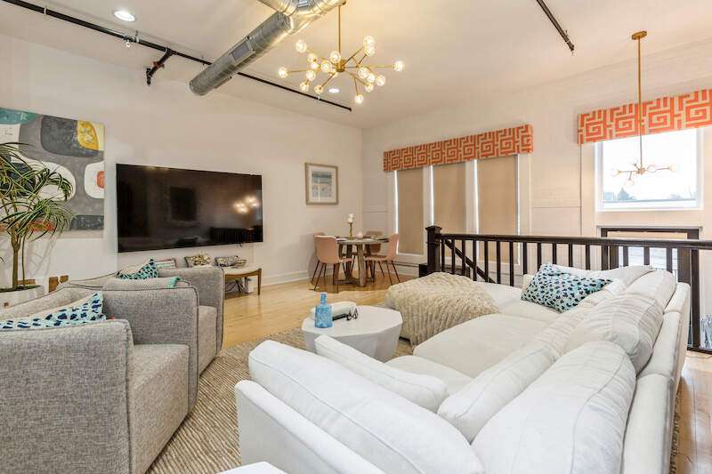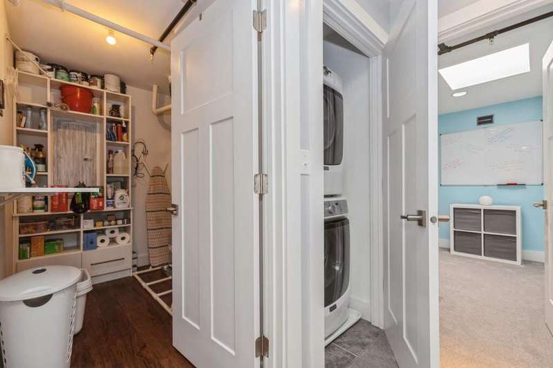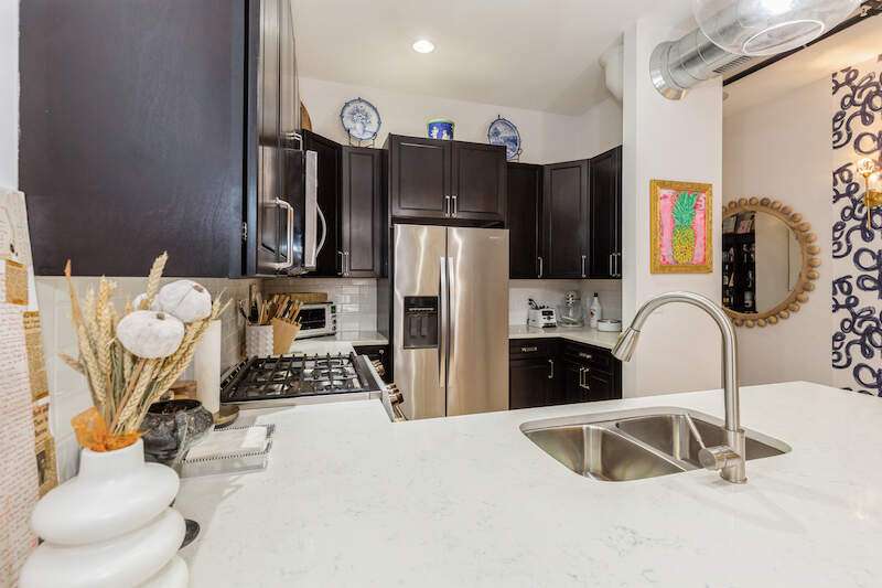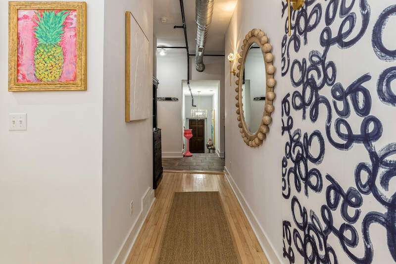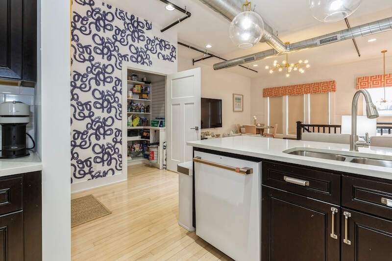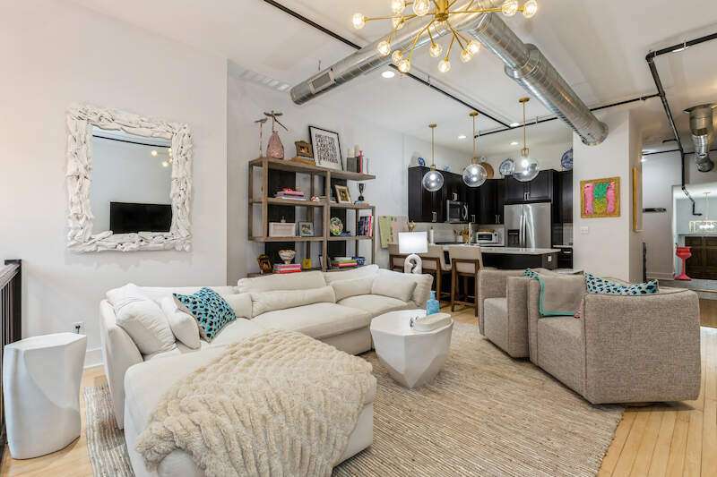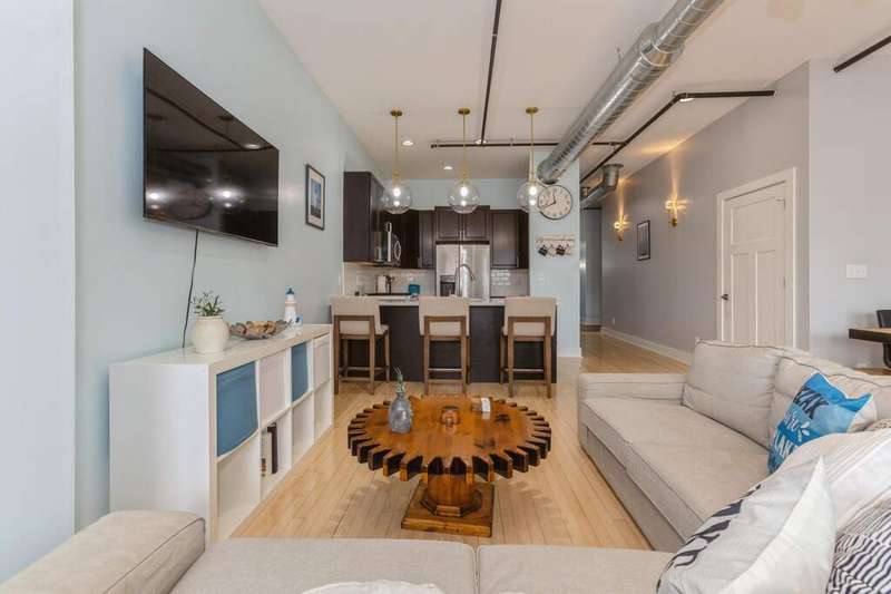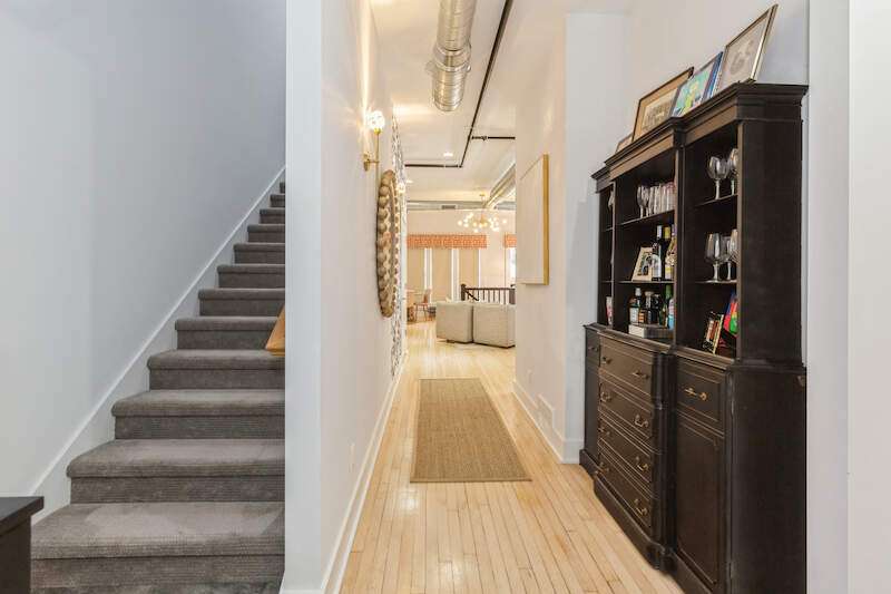 Don't miss the opportunity to own a piece of history with this two-story condo in the Jefferson School Lofts! This large unit is over 1600sq ft and is the perfect combination of modern convenience and original charm with exposed brick, 12ft ceilings, open floor plan, and the only condo with the original oak gym floors from the 1930's. Recent updates include new paint, wall paper accents, premium kitchen appliances, quartz countertops, and custom cabinets. The main floor also has a full bath and welcoming foyer. The second floor features a premium primary suite with dual vanity and large tile shower. There is also laundry and an additional bedroom/office. The exterior features of the condo includes a large paver patio, designated parking space plus a 1 car garage with additional storage. The association amenities include updated fitness room, covered picnic area and fence enclosed dog park. All of this near downtown, and only a 3 block walk to beautiful Lake Michigan sunsets!