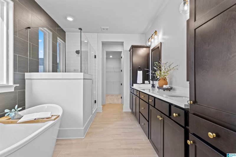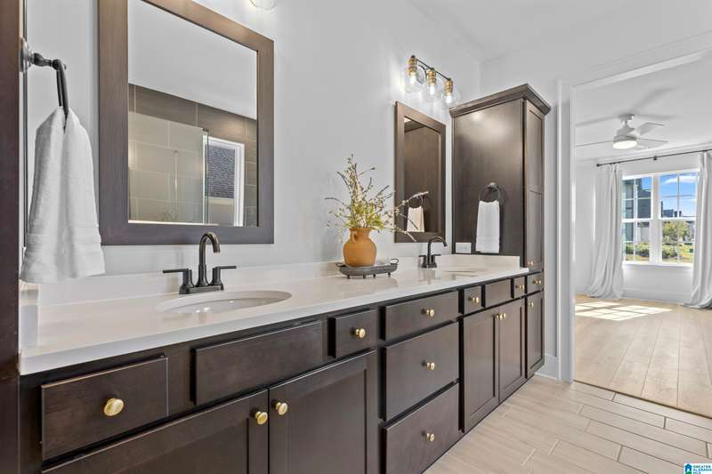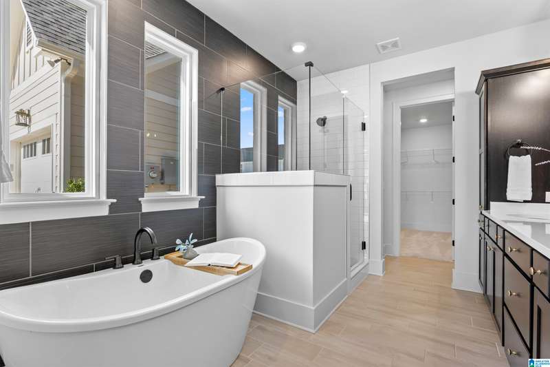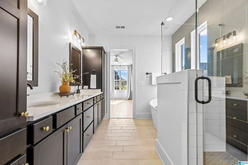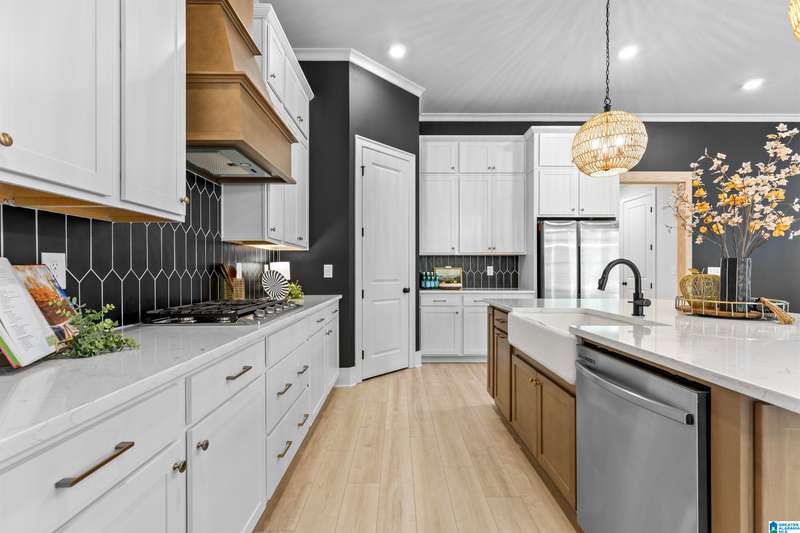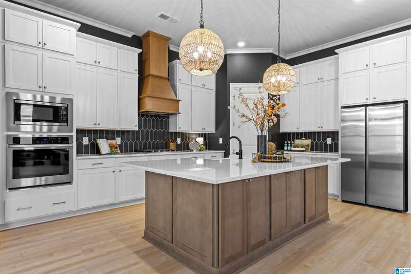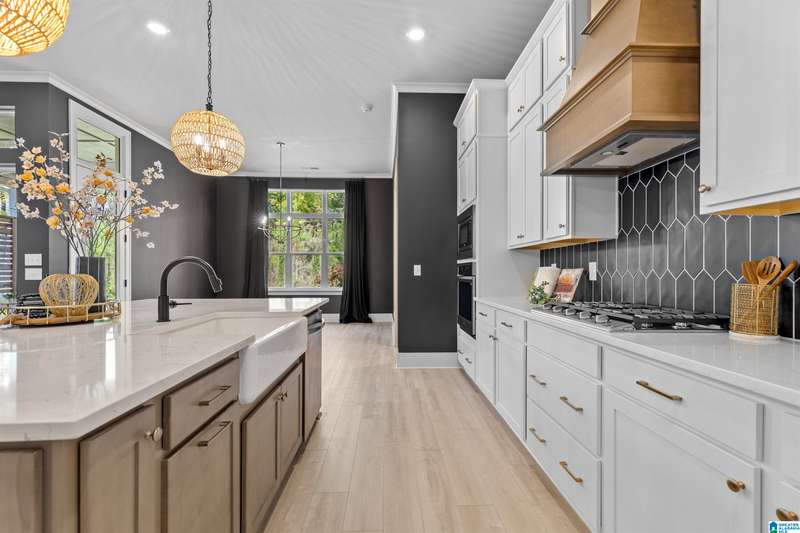 Step into elegance w/this former designer model home, thoughtfully crafted w/over $120K in luxurious upgrades. Every detail speaks sophistication, style & function w/the soaring volume ceilings & an expansive wall of windows to the striking modern stair railing & custom wall treatments. The chef’s kitchen is a true centerpiece, showcasing quartz countertops, stacked cabinetry, a designer cabinet hood, cast iron sink & an enormous island perfect for gathering. Retreat to the main floor spacious owner’s suite w/LVP flooring & spa-like bath, while guests enjoy a 1st floor BD & full BA. Upstairs the inviting bonus room is perfect for the kids or movie nights! 3 more BDs & 2 more full BAs round out the 2nd floor. A 3-car garage including a 2 car climate-controlled bay is a rare find! Outdoor living is private w/a charming covered back patio, while the porte cochere entry adds timeless curb appeal. This is more than a home—it’s a statement of refined living.