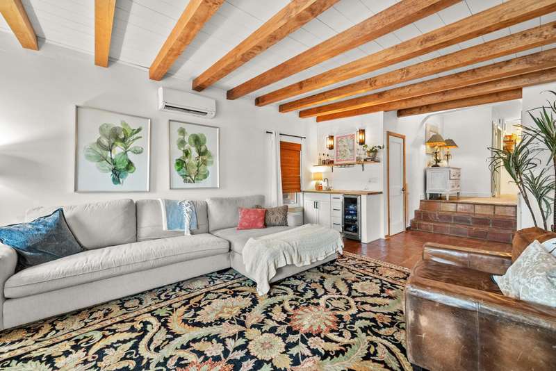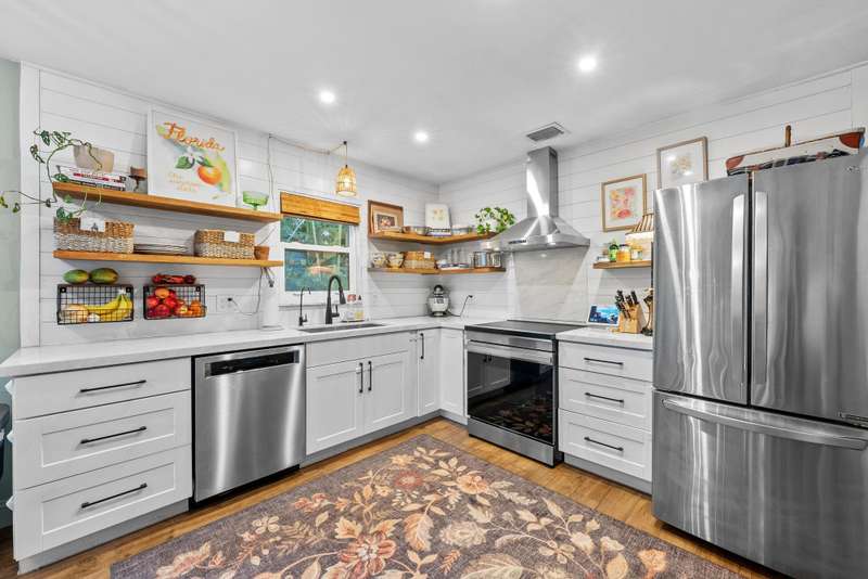 Step into a home with soul-a witness to nearly three quarters of a century in Jupiter. Old-world character blends with modern convenience: classic Mexican tile, refinished beams and crown molding pair beautifully with newer roof, impact windows and doors, remodeled bathrooms, updated kitchen, new appliances and screened-in patio. With nearly 1800 sf, this home offers 3 spacious bedrooms with generous closets, 2.5 stylish bathrooms with stone floors and quartz countertops, and an open eat-in kitchen featuring a 10 ft impact sliding glass door. Relax under the shade of a towering Florida Oak, its branches a canopy of character. Enjoy a fenced yard, rinse off in the outdoor shower, walk to local markets and parks, or take a short bike ride just 2.3 miles to the beach!