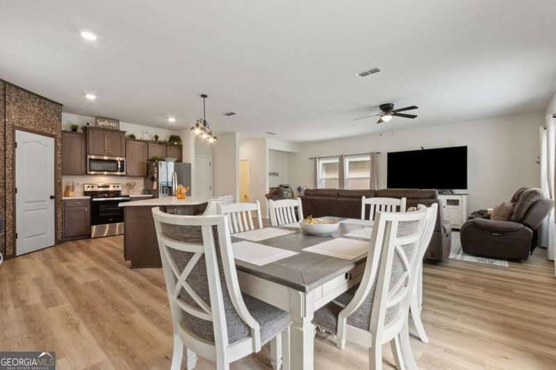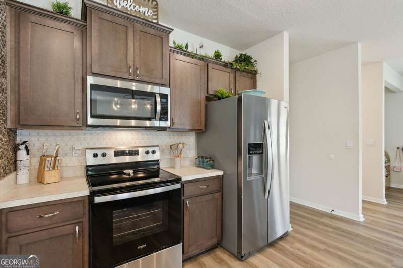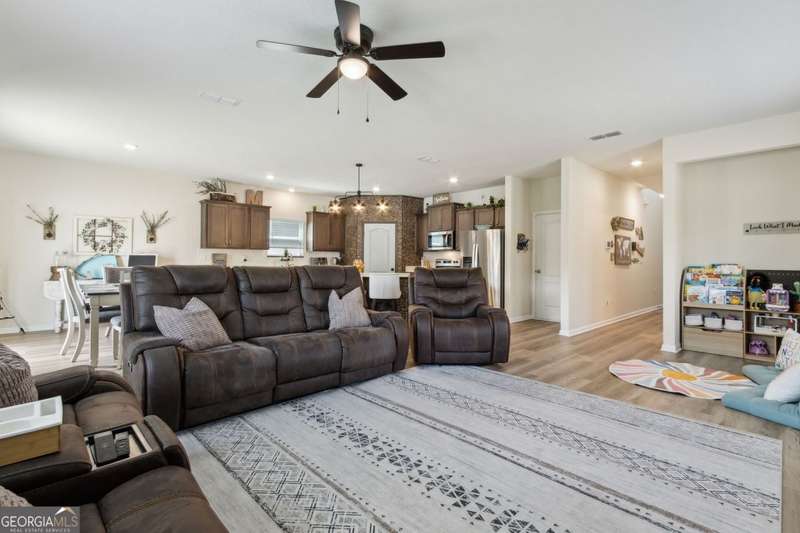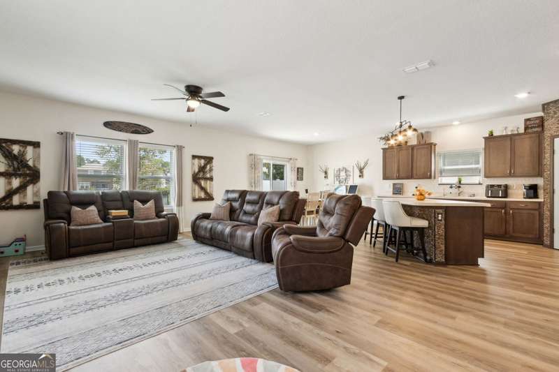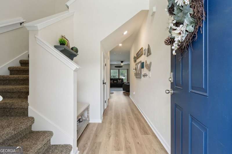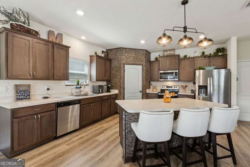 Seller Offering $4K towards Buyers Closing Costs with acceptable offer! This meticulously maintained 4 bedroom 2.5 bath home, built in 2021, is located just minutes from Kings Bay Naval Base. The main floor and bathrooms feature durable luxury vinyl plank flooring, while the stairs and upstairs bedrooms are finished with cozy carpet. The spacious primary bedroom offers a private en suite with dual vanities and two walk-in closets. Upstairs, you'll also find three additional bedrooms and a full bathroom. A half bath is conveniently located on the main floor. The open-concept kitchen includes a large customized island, stainless steel appliances, a customized walk-in pantry, and a reverse osmosis/water softening system. Additional highlights include a two-car garage with automatic opener, smart home technology, and a fenced backyard with views of the neighborhood pond-perfect for relaxing or entertaining. This move-in ready home combines comfort, convenience, and location. This home comes with a 1 year 2-10 Buyers Home Warranty.
