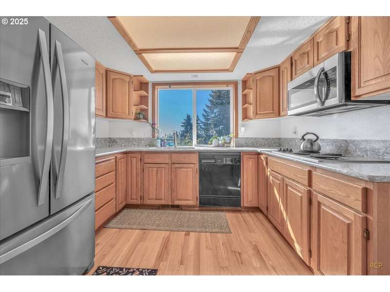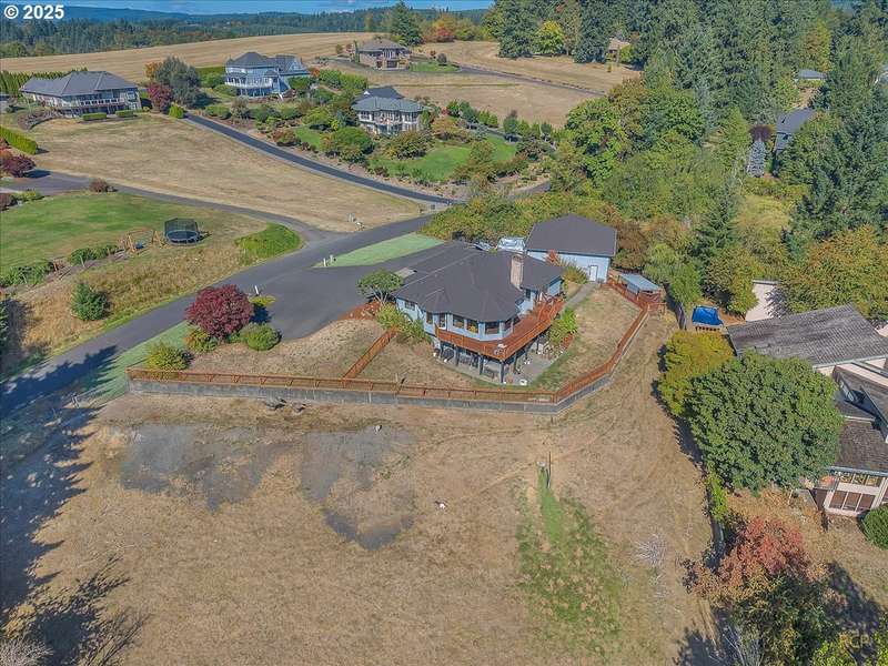 Builder’s own exceptional custom residence is situated on a spacious, fenced .92-acre lot. Offering 2,637 square feet of living, the home features three bedrooms and two and a half bathrooms. An attached two-car garage equipped with automatic openers adds ease to your day. The awe-inspiring views from every window in the comfortable living room will take your breath away. A stunning custom brick gas fireplace serves as the centerpiece, creating a warm and inviting atmosphere. Sliding doors lead directly to the extensive deck, providing an ideal space for entertaining guests or relaxing with family and friends. The kitchen is outfitted with hardwood floors, stainless appliances including French door refrigerator, cooktop & double ovens and offers a convenient pantry for ample storage. A sunny breakfast nook provides the perfect spot to start your day, basking in natural light. The primary suite features French doors, a generous walk-in closet and an ensuite bathroom equipped with dual sinks, shower, and a step-in soaking tub. A sliding door offers direct access to the deck, enhancing the suite’s private retreat feel. On the lower level, the family room boasts a gorgeous brick gas fireplace and the added functionality of a kitchenette. A sliding door opens to the patio, seamlessly blending indoor and outdoor living spaces. For added practicality, this home includes two washer and dryer hookups—one on the main level and one on the lower level where the utility room also has a sink. The property boasts an impressive detached 40x38 shop that is equipped with three roll-up doors, providing ample parking for your RV and your toys. Features include concrete floors, water and power connections, and the added benefit of a half-bath for extra convenience.