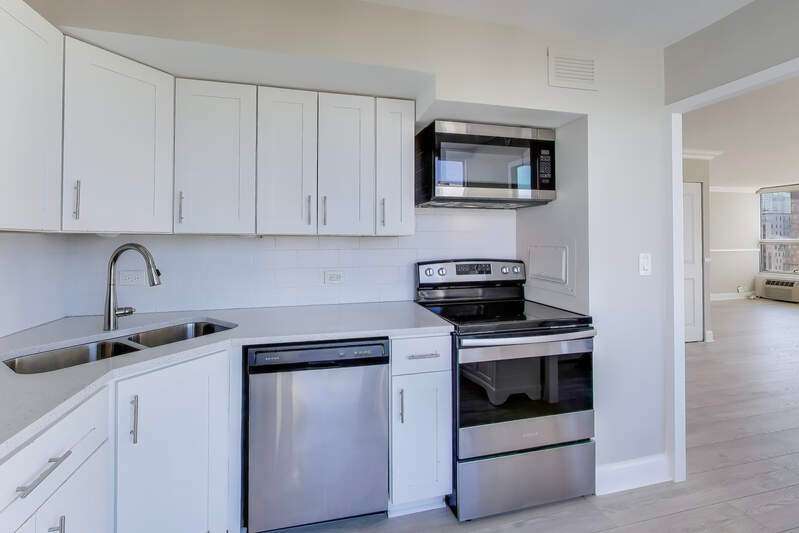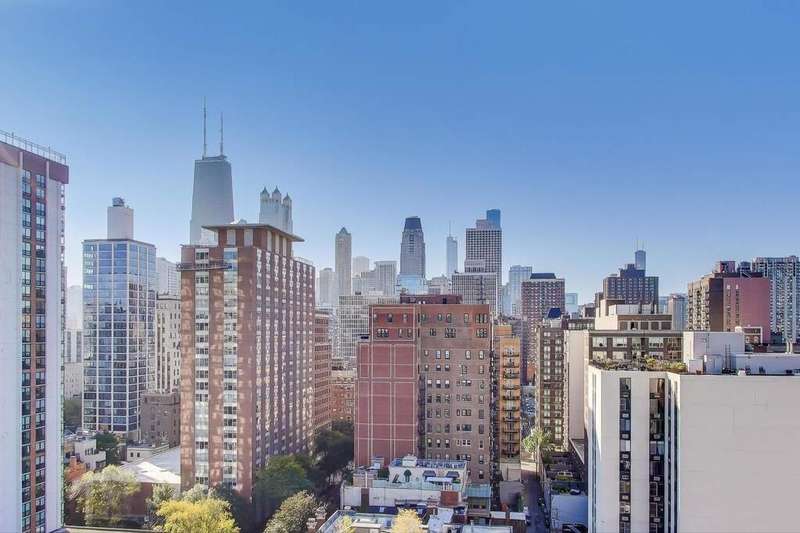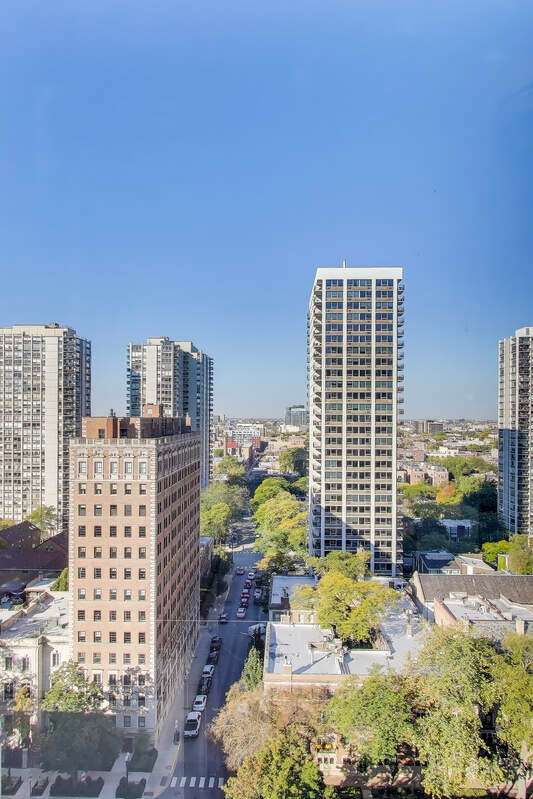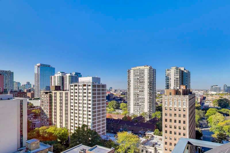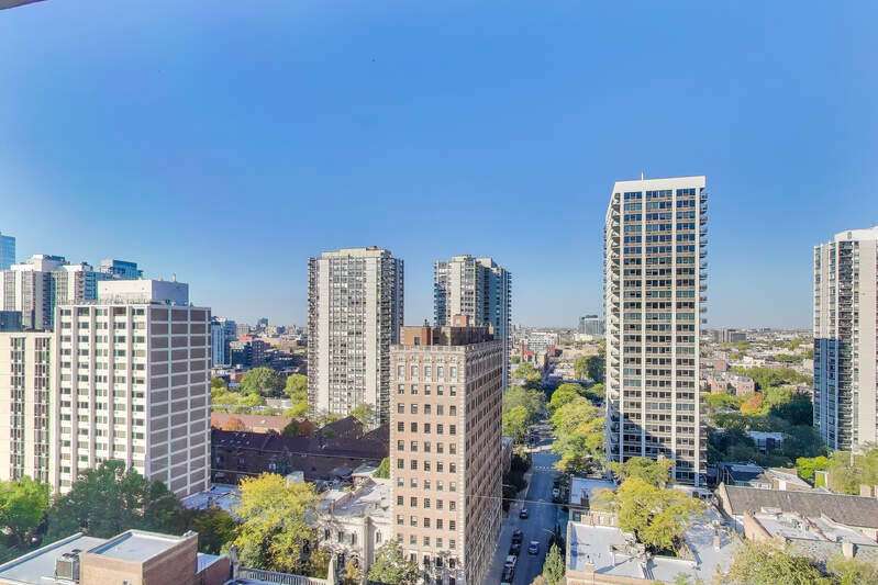 This highly sought after & rarely available PENTHOUSE 2 bedroom, 2 bathroom corner unit in the heart of the Gold Coast is a must see! Perched above the treetops with sweeping lake, skyline, and sunset views, this beautifully renovated residence captures the very best of Chicago from every angle. The open living and dining area flows seamlessly into a stylish kitchen featuring quartz countertops, white cabinetry, and stainless steel appliances, perfect for both everyday living and entertaining. Wake up to peaceful sunrise views sparkling over Lake Michigan from both north facing bedrooms then unwind with glowing sunset skies from your spacious main living space & private south facing balcony. The thoughtful layout provides both privacy and flexibility, with two bedrooms-one en-suite and the other conveniently adjacent to a full hall bath-each framed by iconic city vistas. This well-managed, pet-friendly building has a full-time on-site manager, live-in engineer, bike storage, laundry facilities, and additional storage. Brand-new elevators installed in 2025. Two pets allowed (30 lb. weight limit). 1400 State is situated steps from the Lakefront Trail along Lake Michigan, Oak Street Beach, world-class shopping, dining, and public transit-this top-floor home offers timeless style, modern comfort, and an unbeatable Gold Coast location.