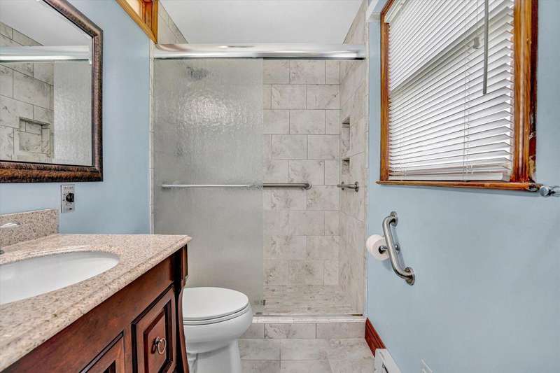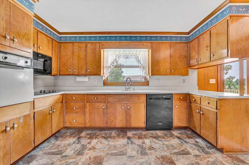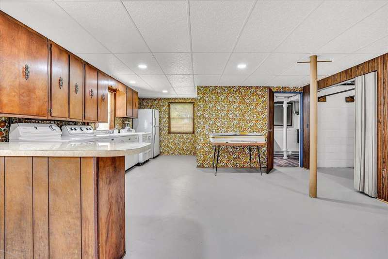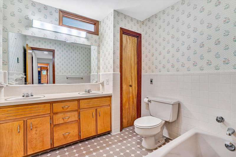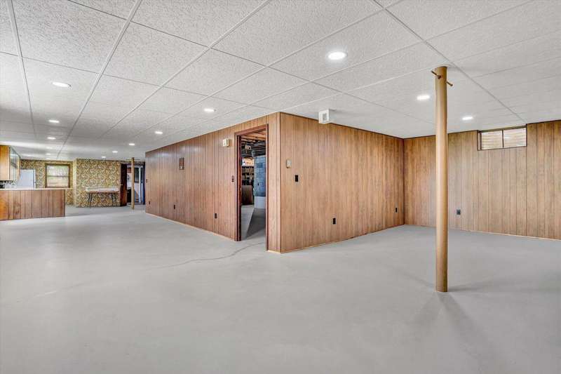Perfect family pleasing home, built with lots of upgrades that were before its time. Brick ranch with 4 bedrooms and 2 full baths on the main level. Eat-in kitchen with birch cabinets that has a built in flour bin, bread drawer, cutting board & trash can cabinet. Family room with ceiling beams, herringbone wood floors, built in bookcase & display cabinet, brick fireplace and an a-trim door opening to the upper patio with rod iron railings. Dining room flows into the living room with plenty of room for entertaining. Foyer with decorative planter, intercoms throughout home and central vac. Hardwood floors in the hallway and bedrooms. Tile floors and linen closet in the baths. Primary bath with walk-in tile shower. Lots of extra closets, walk-in closet and pocket doors. Lower level with
