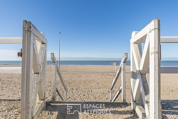 On the beach of Trouville-sur-Mer, in the heart of an elegant seaside villa from the late 19th century, this approximately 86 sqm apartment embodies a refined art of living, with your feet in the sand. Offering direct access to the sea, this rare property combines period charm, generous volumes, and sought-after amenities, within an intimate and perfectly maintained condominium. From the entrance, the marine perspectives capture the eye through large openings. The living room impresses with its high ceilings, herringbone parquet flooring, moldings, fireplace, and the exceptional light that floods the space. Every detail evokes the nobility of old residences. A mezzanine opening onto the living room accommodates a sleeping or reading area, while a ground-floor bedroom, also facing the sea horizon, invites calm and contemplation. A bathroom with vintage accents completes this level. This property comes with rare amenities: a private beach cabin with direct access, a shared terrace facing the sea, and a parking space. Located a few steps from the lively heart of Trouville, its covered market, its shops and the train station, this apartment combines a privileged location with remarkable architecture. A unique place, designed as a parenthesis between sky and sea, where each moment is lived to the rhythm of the tides. ENERGY CLASS: E / CLIMATE CLASS: B Estimated annual energy costs for standard use, established from average energy prices indexed for the years 2021, 2022, 2023 (including subscriptions): between 2130 euros and 2900 euros. Property subject to co-ownership status. 15 residential lots. Annual amount of co-ownership charges: 2160 Euros. No proceedings in progress. Information on the risks to which this property is exposed is available on the Georisques website: www.georisques.gouv.fr