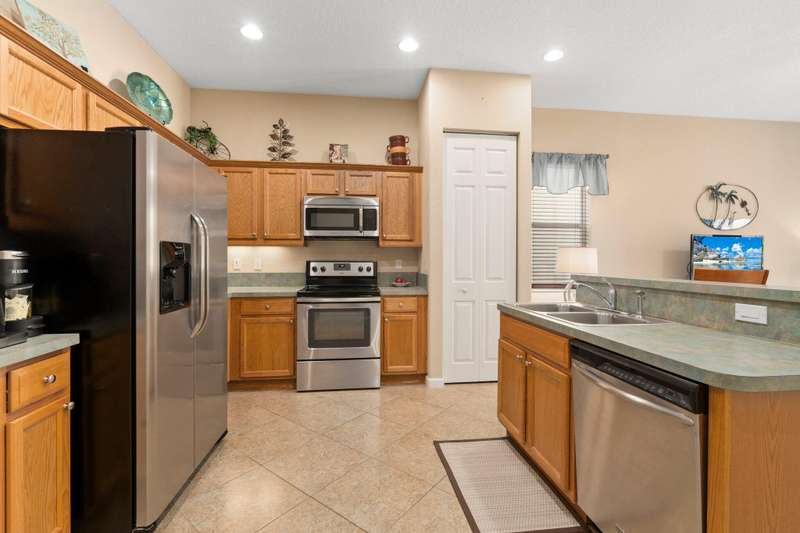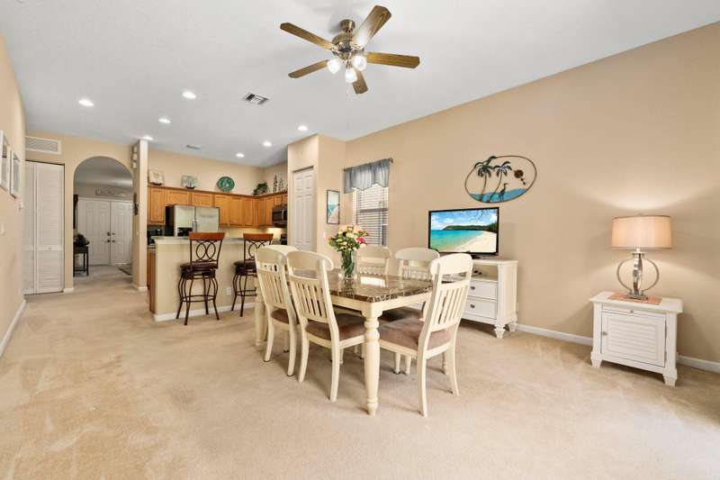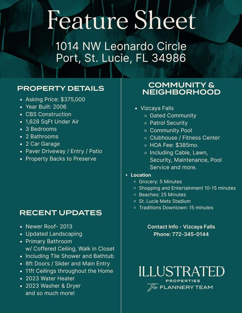 Offering a 1 YEAR RATE BUYDOWN or $5,000 towards Buyers CLOSING COSTS! Welcoming you to Experience Resort Style Living in this Magnificent Home and community, backing up to a Preserve! Discover this Immaculate CBS 3 Bedroom, 2 Bathroom, 2 Car Garage Home, located in the Highly Desirable Vizcaya Falls! Step inside this Inviting, open, light and bright Split Floor Plan Home, featuring 11ft ceilings throughout, 8ft Doors and Slider. This Home has been well cared for and maintained, including a Paver Driveway, Front Porch and Back Patio, Barrel Tile Roof, New W/H (2022), Updated Landscaping, New Front Door/Garage Keypad Entry, and so much more.