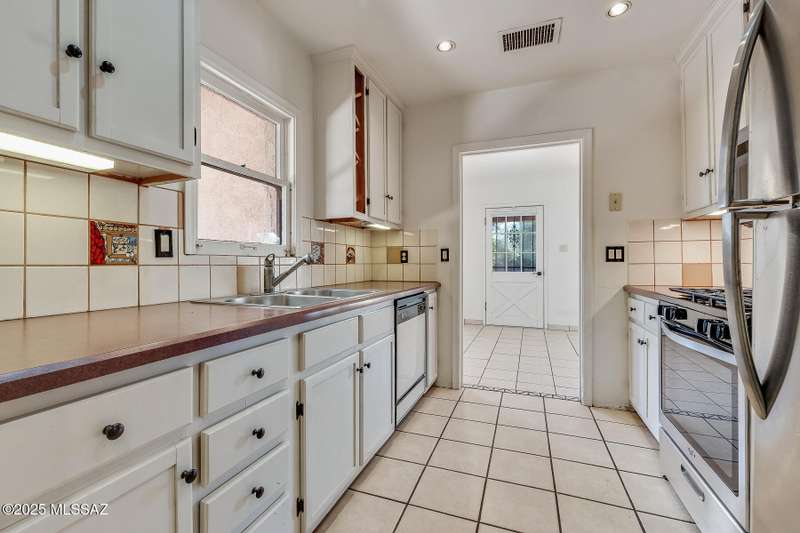 Drastic Price Reduction! Charming Updated Mid-Century home near Oracle and Ina. Don't let the address fool you. Very quiet behind the fence and inside this home. Original structure was built in 1947 however after extensive renovations (1995) and additions the effective year built is 1976. This special home retained it's original charm even with all the quality updates. Thick exterior walls, high coved ceilings, tongue and groove beamed ceilings, tile floors, etc. Updated kitchen and updated bathrooms. Spacious primary bedroom on main floor. Large living and dining room. Roof under warranty. Newer 2020 HVAC unit. Spacious and private yard areas with the mature trees. Extensive wrap around covered patios in front and rear yard. Lots of possibilities. See floor plan in documents. No HOA