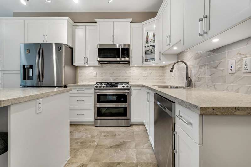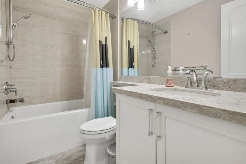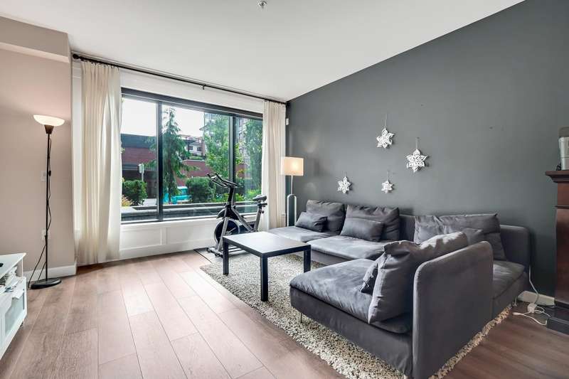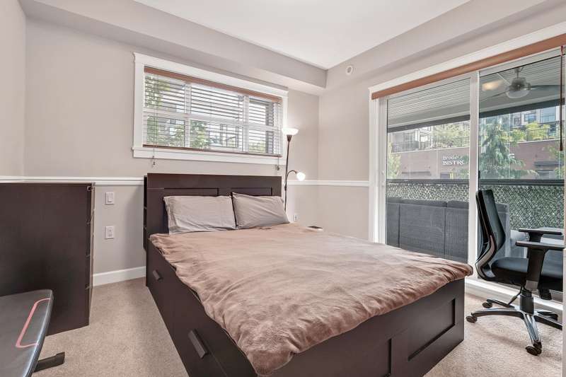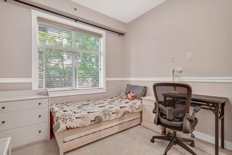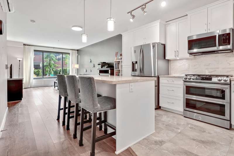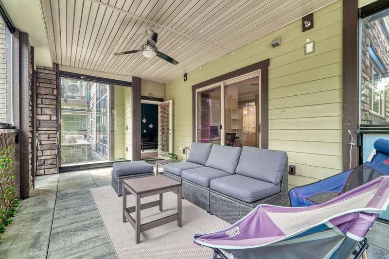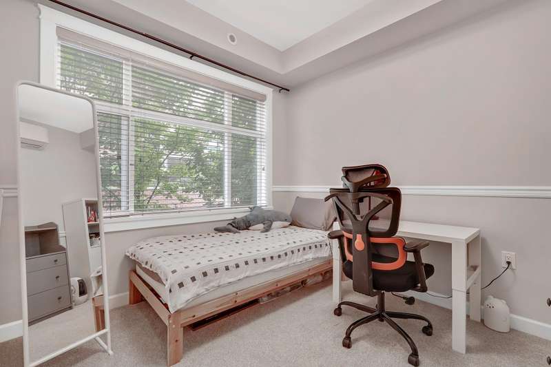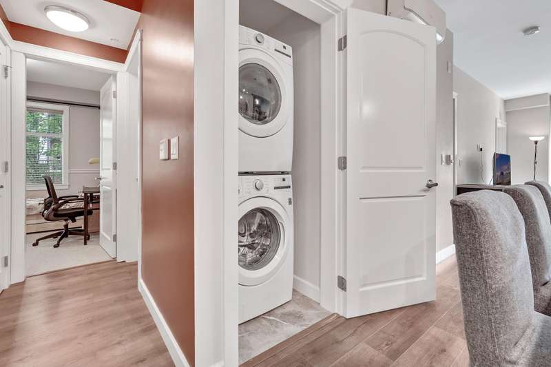 Yorkson Park Central! Large 1,129 SqFt 3 bed, 2 bath, northeast corner, and ground floor unit. The gourmet kitchen comes with stainless appliances, including gas cooktop, quartz countertops, and ample cabinet spaces. Your comfort living with energy efficiency heat-pump heating and cooling for all rooms and floor heating for bathrooms. Open concept indoor living space and all year round glass-enclosed 261 SqFt solarium with gas hookup. Two side by side parking and storage locker next to the parking. The well-run building comes with fitness, lounge, children's playroom, and playground. Great location with steps to Carvolth Park & Ride and easy access to Hwy 1, shopping, restaurants, and parks. School catchment: Willoughby Elementary, Yorkson Creek Middle, and R.E. Mountain Secondary.