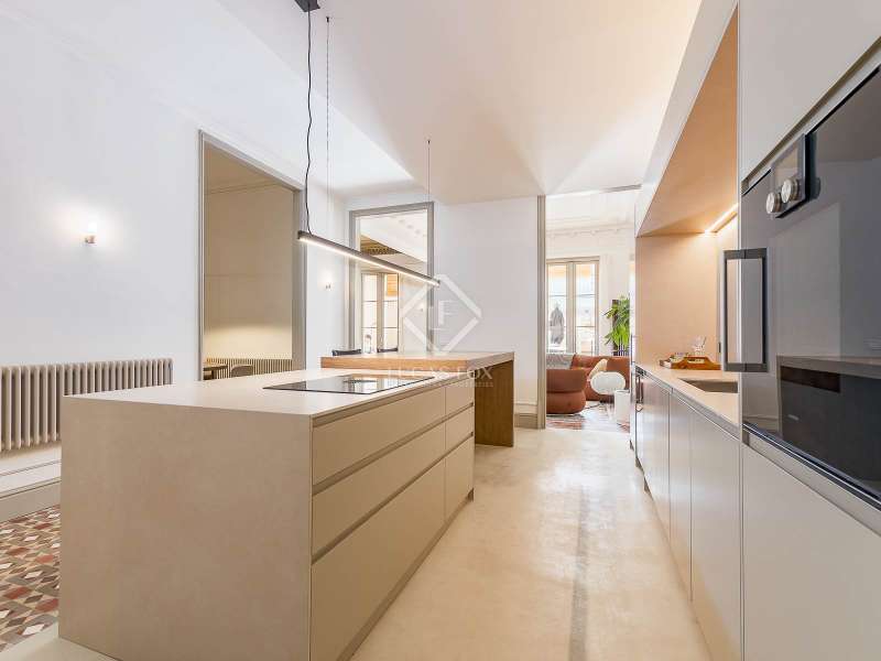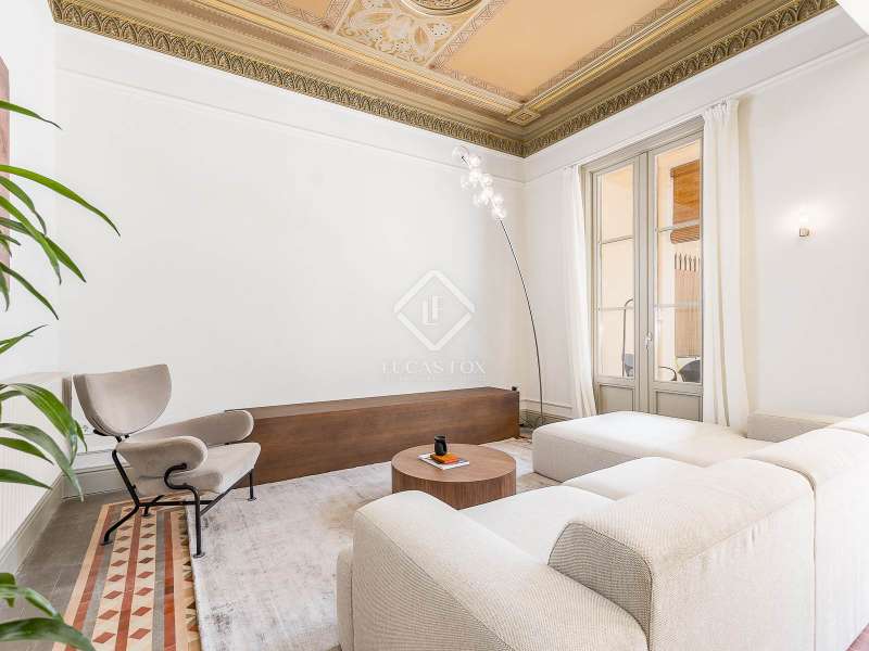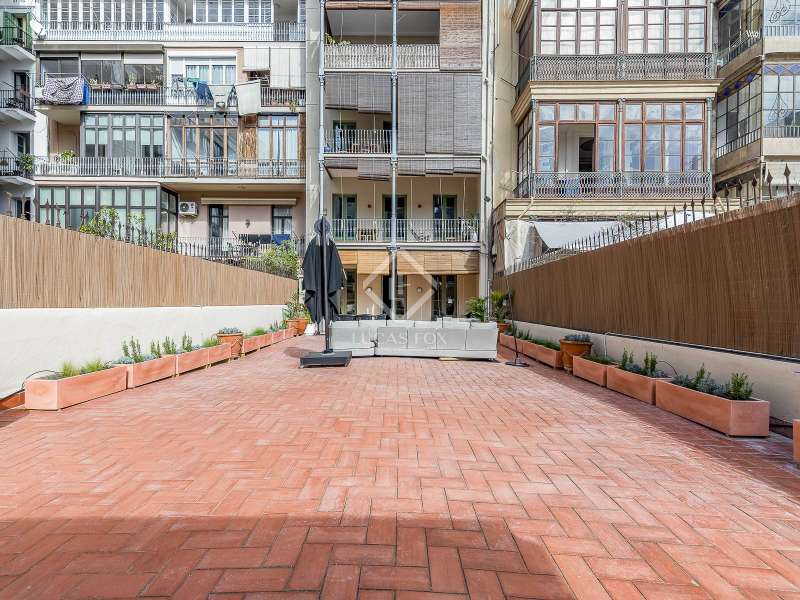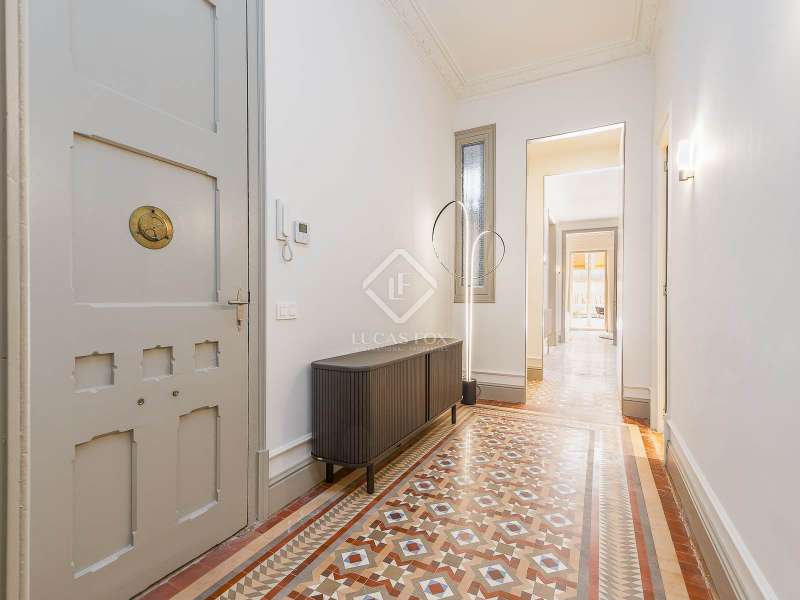 Lucas Fox presents this unique property located on the prestigious Girona street, in a well-preserved building from the end of the 19th century. The area, with future pedestrianisation, promises to become one of the most exclusive areas of l'Eixample. The property has been completely renovated , refurbishment the charm of modernism with a contemporary and functional design. Highlights include high ceilings decorated with original mouldings and Nolla mosaic floors, restored to preserve the historic essence of the property. The spacious and bright living room connects to a fantastic porch that gives access to a spectacular 145 m² terrace facing southwest, which means sunlight almost all day long. This versatile space is ideal for both relaxing and outdoor entertaining, so you will enjoy the wonderful Mediterranean climate. The kitchen, in addition to a minimalist design and an open concept to the living dining room living room , fuses functionality and style. It is equipped with high-end appliances , a large island with a cooking area, space for stools and high-capacity tall units. The laundry room and utility room are also located in this area, perfectly integrated. The night area houses three bedrooms, including the master suite, which stands out for its original coffered ceilings and restored Nolla mosaic floor , elements that add authenticity and distinction. The contemporary design of this room blends harmoniously with classic details, creating a bright and welcoming space. Two additional double bedrooms, along with a full bathroom and a guest toilet, complete the layout. The bathrooms have been completely renovated and feature a contemporary finish that blends harmoniously with the pre-existing modernist elements. They are also equipped with high-quality taps and wall tiles. Several interior patios allow for abundant natural light in the central areas of the property, while at the end of the terrace we find a multipurpose room of 10 m². This room offers the possibility of converting it into an additional bathroom or a summer kitchen, perfect for enjoying this valuable exterior space. In short, this property is ideal for those looking for a sophisticated residence in an emblematic setting, where tradition and modernity meet in perfect harmony. Contact Lucas Fox to arrange a viewing and discover this gem in the heart of Barcelona.