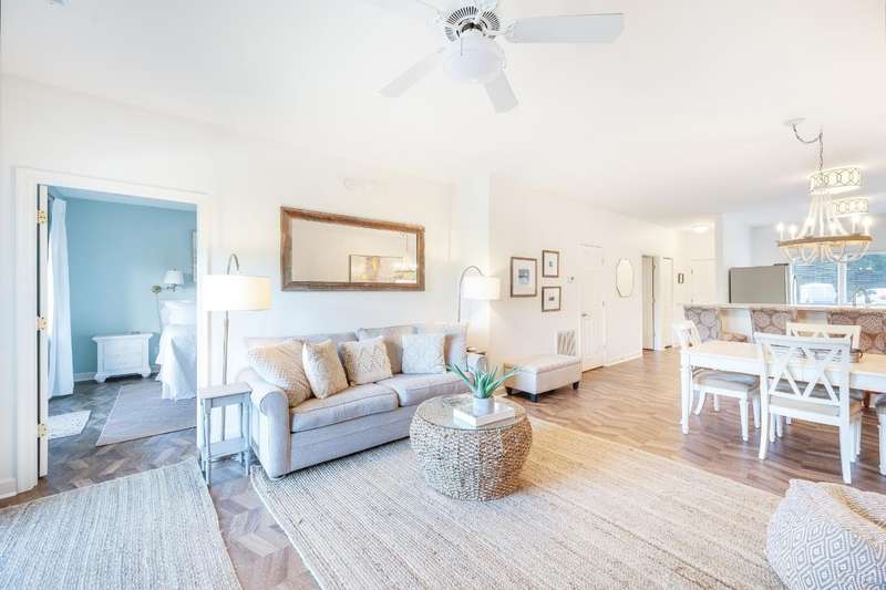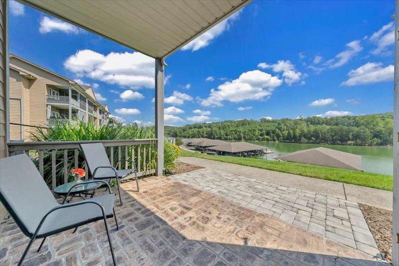 Welcome to the lake! This fully furnished condo at Mariners Village has been updated, and you'll appreciate the designer touches. No-step entry, main-level, with a lovely view of Smith Mountain Lake. Ready for you to make this your full-time home or to continue its current status as one of the most successful short-term rentals at Mariners Village. It's fully stocked, and ready to go; and you can keep its five star rating, if you continue with the current management company. New LVP flooring, new furnishings, new stainless steel kitchen appliances, fresh paint, new light fixtures, updated bathrooms, brand-new screens, ceiling fans, and flooring on the porch. Resort amenities include golf, pickleball, beaches, tennis, trails, pools--2 outdoor/1 indoor, 2 hot tubs, game room, fitness. Mariners Landing has three restaurants, shopping, Starbucks, boat launch, and leased covered boat slips (subject to availability.) Two storage closets: one on the deck and one on the lower level.