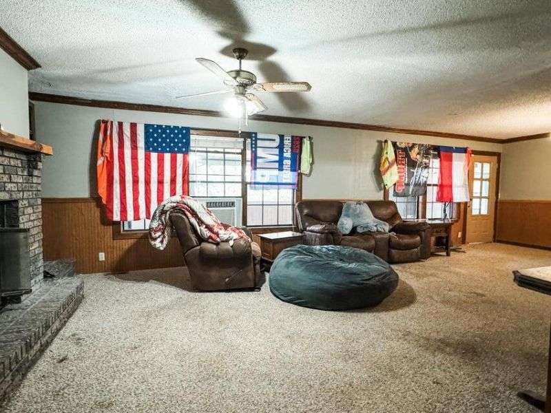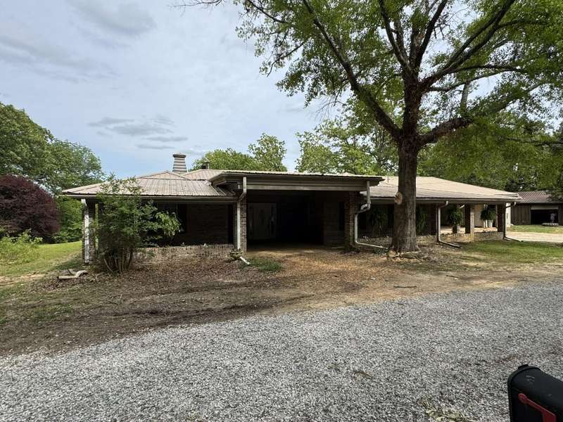 Located in the Belden area close to Tupelo this brick home sits privately at the back of a dead end drive on 4.5 beautiful acres. 3 BD/3 full baths on the main level & 1BD/1 bath w/kitchenette/living area in the basement. On the main level there's also a large kitchen/dining area & laundry room with two living rooms and a fireplace! There is lots of closet space for storage throughout. This home needs some TLC but has tons of potential and lots of space. There's 2654 sq ft on the main level, 714 sq ft finished basement and 635 sq ft of unfinished basement space. Double attached carport w/attached storage room. There's also a shop & covered open shed. Home has its own private water well. There will be a deed restriction against multiple mobile homes. Info deemed reliable, not guaranteed.