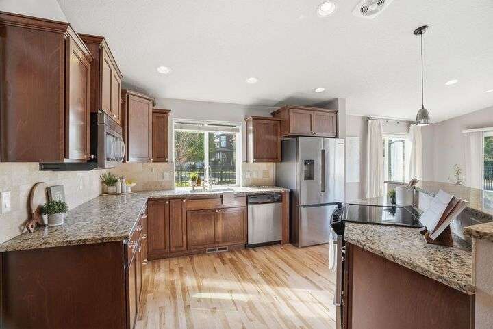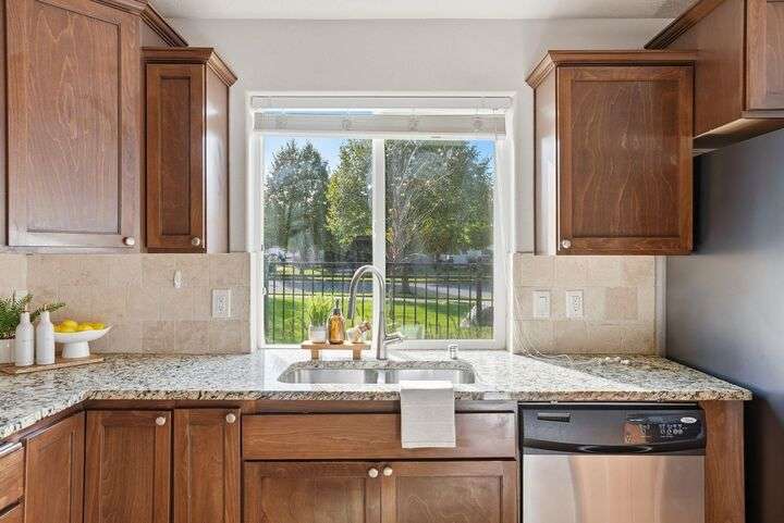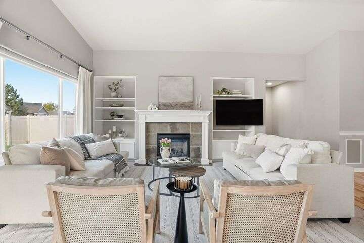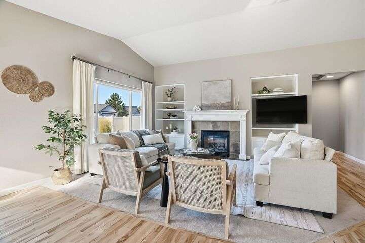 Beautiful Single-Level Home in Liberty Lake! Enjoy maintenance-free living in this stunning former Greenstone model home, perfectly situated next to Orchard Park and within walking distance to all that the River District has to offer. This 3-bedroom, 2-bath home features an open floor plan with just under 1,800 sq. ft., zero-step entry, and newly refinished hardwood floors. The kitchen includes granite countertops and quality finishes throughout, while the living room offers a cozy fireplace with built-ins. Located on a desirable corner lot, yard maintenance is completely taken care of—allowing you to sit back, relax, and enjoy everything Liberty Lake has to offer.