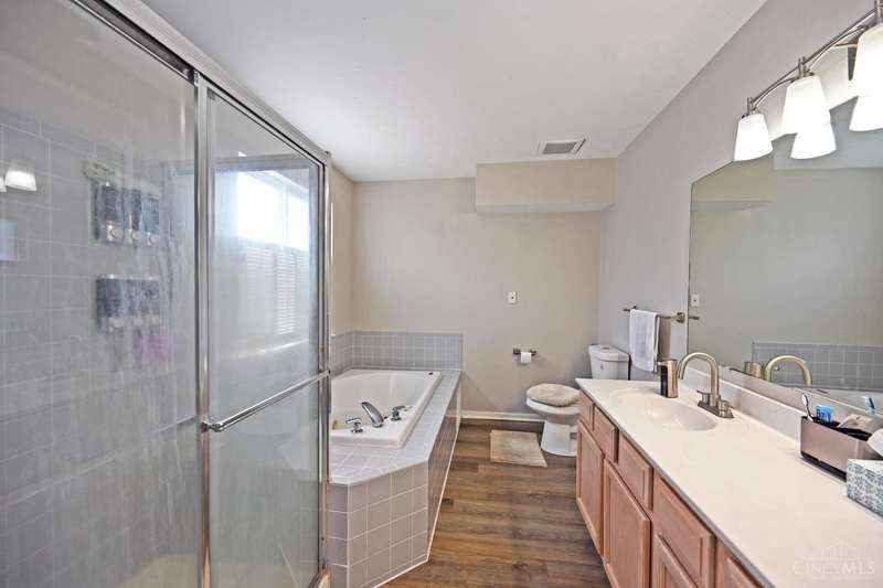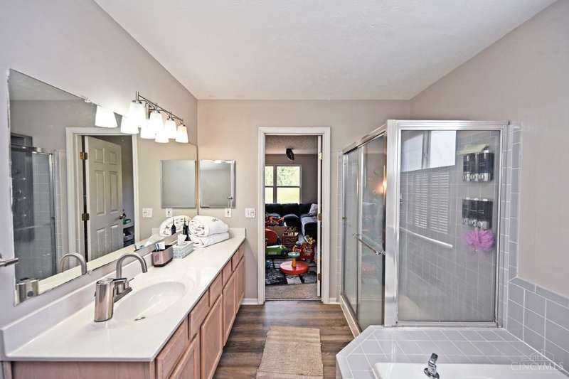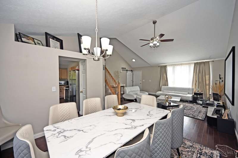 Beautiful transitional home on a quiet cul-de-sac in Regency Park is perfect for the empty nester, OR for an extended family, as it features a first floor primary bedroom with en-suite bathroom and walk-in closet, plus 3 bedrooms on the second floor, one of which is oversized. Vaulted living room and dining room feature stunning hardwood floors. Kitchen is well-equipped and a true eat-in with more gleaming hardwood floors. Tons of closet space and storage capacity. The lot is level and features a wooden rail fence. Come see it and make it your dream home.