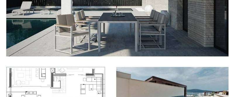 The penthouse itself is a masterpiece of modern design and sophistication. The open-plan living room seamlessly flows into a dining area and a well-appointed kitchen, creating an inviting space for relaxation and entertainment. Three spacious bedrooms, each with its en-suite bathroom, offer luxurious comfort and privacy. Moreover, multiple terraces provide sweeping vistas of the sea, the charming boulevard, and the majestic mountains surrounding you. Ascend to the second level to discover a private terrace adorned with a sparkling swimming pool - a perfect haven for family gatherings and soirees with friends.