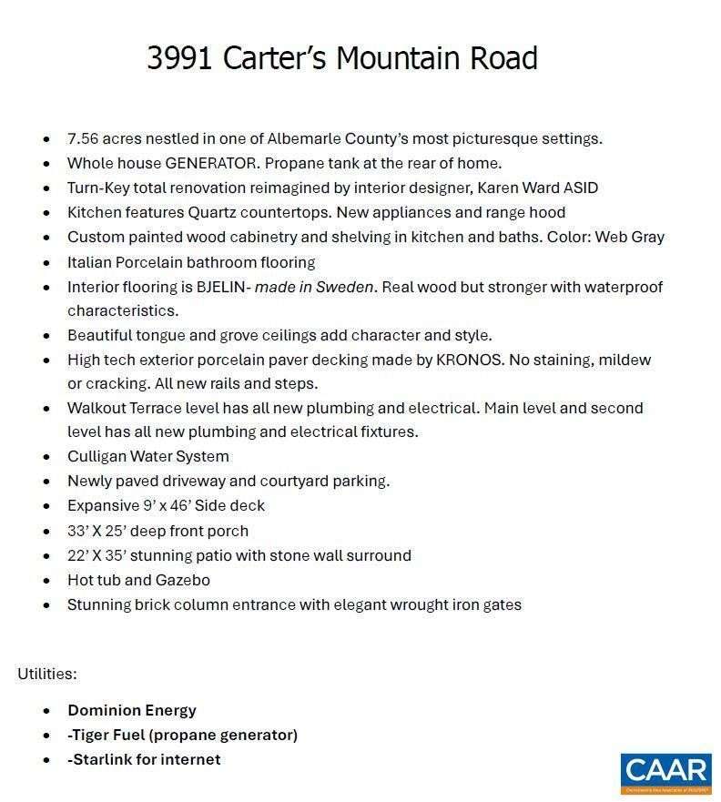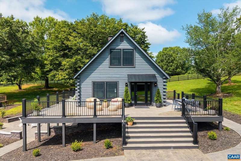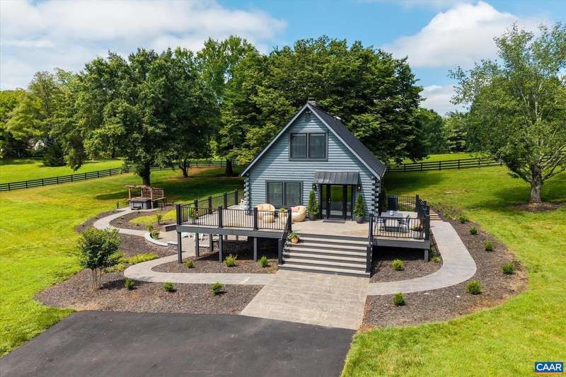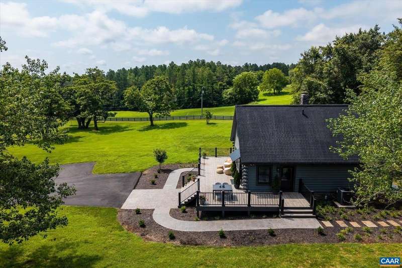 A Rare Albemarle County Retreat- Where Luxury Meets Virginia Wine Country. Your opportunity to own a stunningly restored log cabin retreat nestled on 7.56 bucolic acres in the heart of Albemarle County. Just minutes from Charlottesville and surrounded by the region?s most celebrated wineries, cideries, & the enchanting Historic Morven Gardens, this turnkey 4-bedroom home offers a blend of rustic charm & modern luxury. Reimagined by interior designer Karen Ward, ASID, the home showcases fine craftsmanship & bespoke finishes throughout. Every detail is brand new-- the windows and doors to the custom wood cabinetry, designer lighting, & high-end materials. The spa-like bathrooms feature imported Italian and Spanish porcelain walls & flooring, delivering comfort & style. Step outside onto the expansive wraparound deck/rails where Kronos porcelain pavers create the ideal setting for outdoor entertaining or quiet morning coffee. Located just moments from Gabriele Rausse Winery, Carter Mountain Orchard?s charming wine shop, & the acclaimed stops along the Monticello Wine Trail?including Jefferson Vineyards, Blenheim Vineyards, and Trump Winery?this property is a rare jewel in one of in one of Virginia?s most picturesque settings.,Painted Cabinets,Quartz Counter,Wood Cabinets