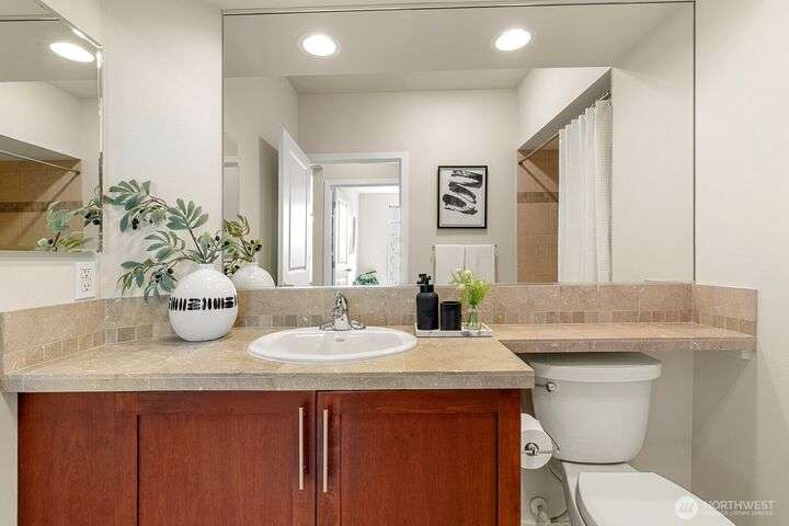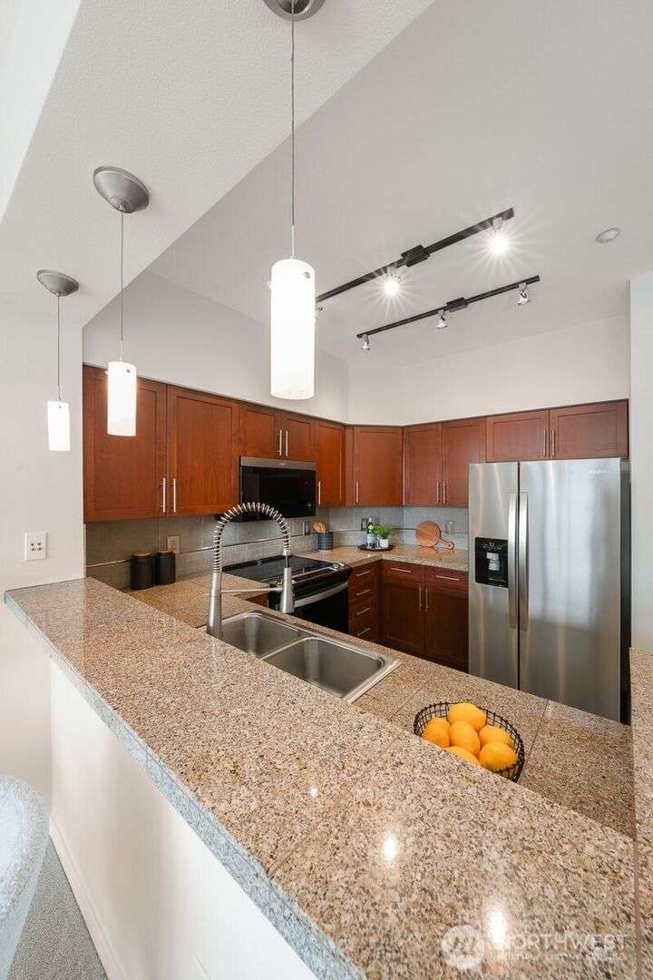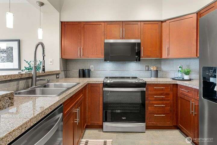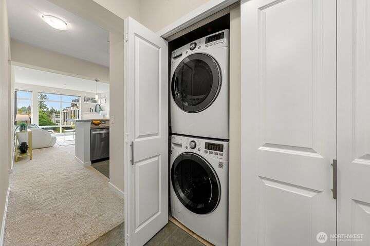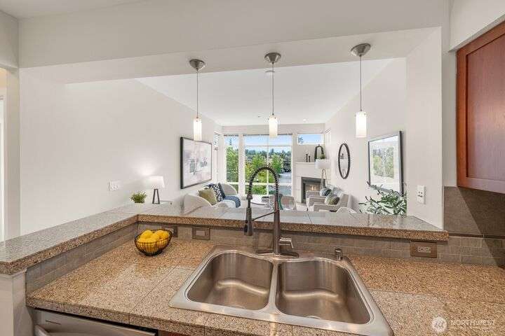 Top-Floor Downtown Kirkland Gem - Lake, Light, & Luxury. Experience the best of downtown Kirkland living in this exceptional top-floor home, just steps from the lake. Floor-to-ceiling windows offer plenty of natural light from the unobstructed southern exposure, while maintaining great privacy. Enjoy high ceilings and a serene balcony on the quiet side of the building. All new carpet, paint, stainless kitchen suite, and smart thermostats in an ideal floor plan featuring a study or home office. Walk to the waterfront, Marina Park, the farmer’s market, boutique shops, and an incredible array of restaurants and grocery stores. A sophisticated, like-new residence in the heart of downtown Kirkland.