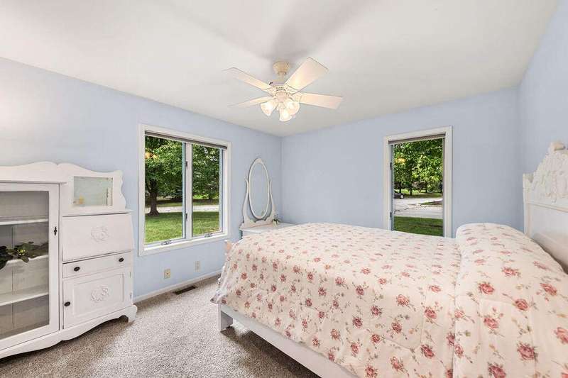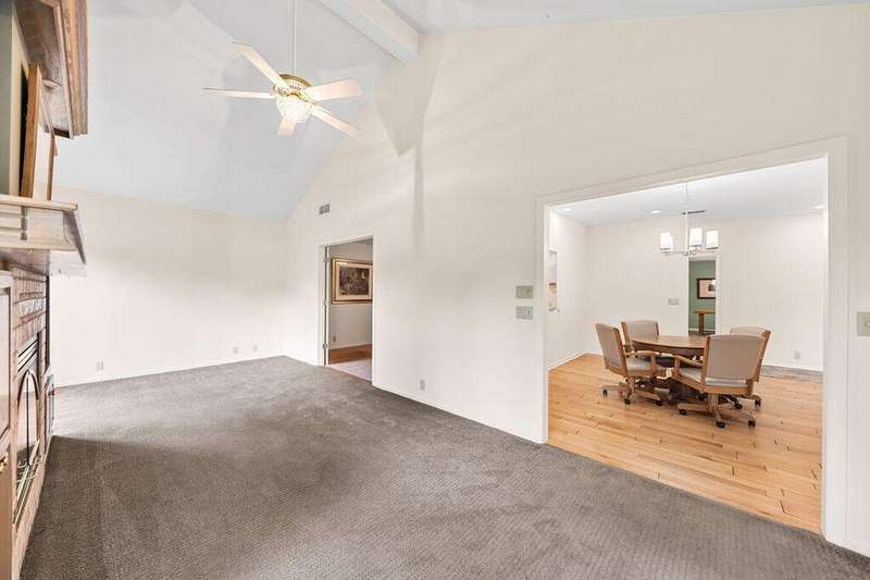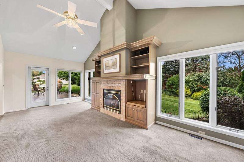 Discover comfort and convenience in this stunning paired villa on a quiet cul-de-sac, set on over a third of an acre, in sought-after Quail Ridge. Offering 4 bedrooms and 3 baths with nearly 2,800 sq ft of beautifully designed living space, this home combines style with low maintenance living-lawn care, landscaping and snow removal are all included! The light-filled entry with skylight leads into soaring ceilings, expansive windows and a flexible great room with wood plank flooring. Enjoy the inviting family room with fireplace and walkout to the deck overlooking the private backyard. The main-floor primary suite features glass doors with blackout shades, a spa-inspired bath with dual sinks, tiled walk-in shower and a spacious walk-in closet. This split ranch design offers two additional main floor bedrooms (one currently an office with built-ins) with a full bath between. The eat-in kitchen boasts quartz counters, white cabinetry with many pull-outs, stainless appliances and tile backsplash. A convenient laundry completes main level. Upstairs you'll find a private bonus suite with large closet, 3/4 bath, storage area, and even a sauna! With its flexible floor plan, abundant natural light, and prime location, this Quail Ridge villa truly offers main-floor living at its finest! Conveniently located on north side of Valparaiso near Valparaiso Country Club, YMCA, shops, restaurants, parks and schools. Just minutes from downtown Valparaiso.