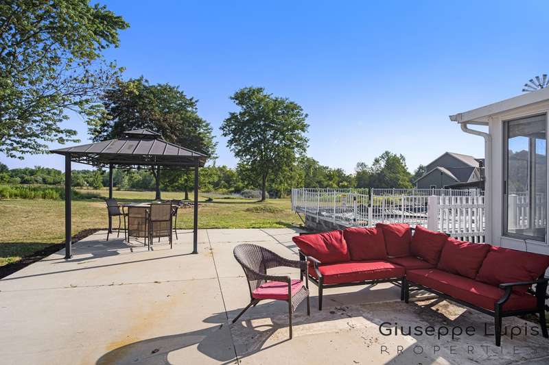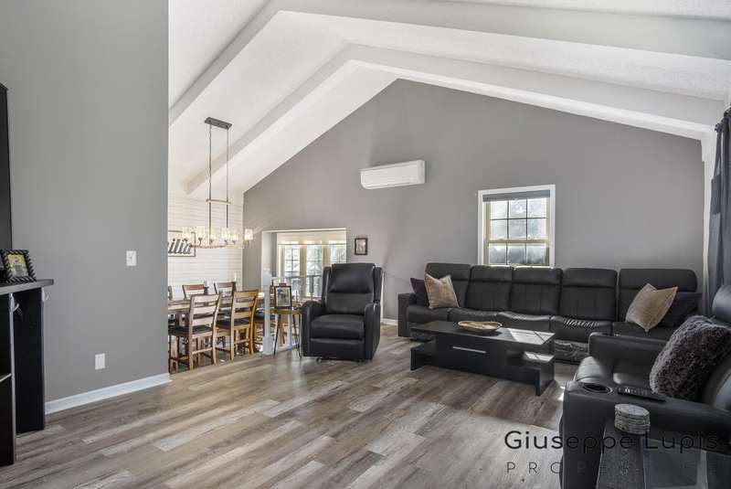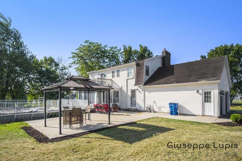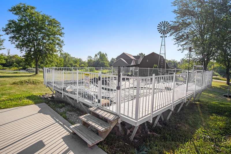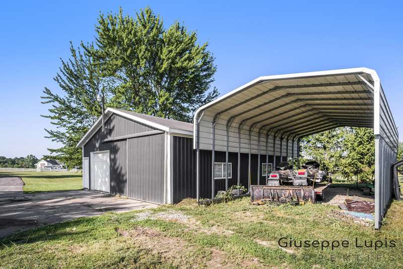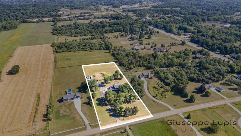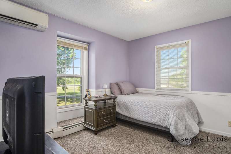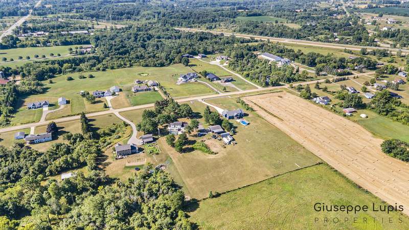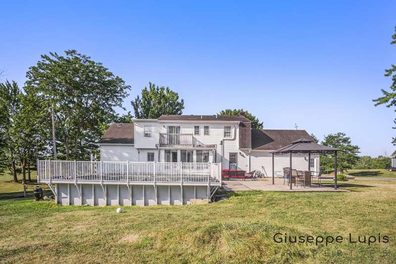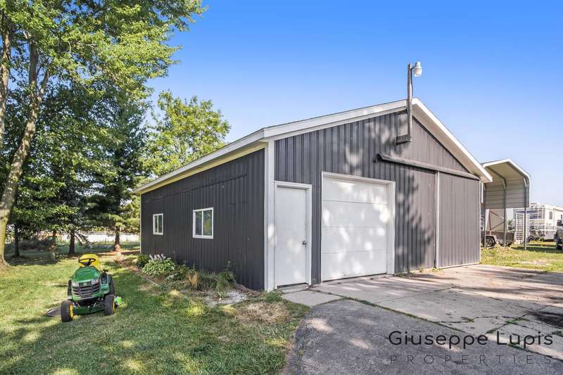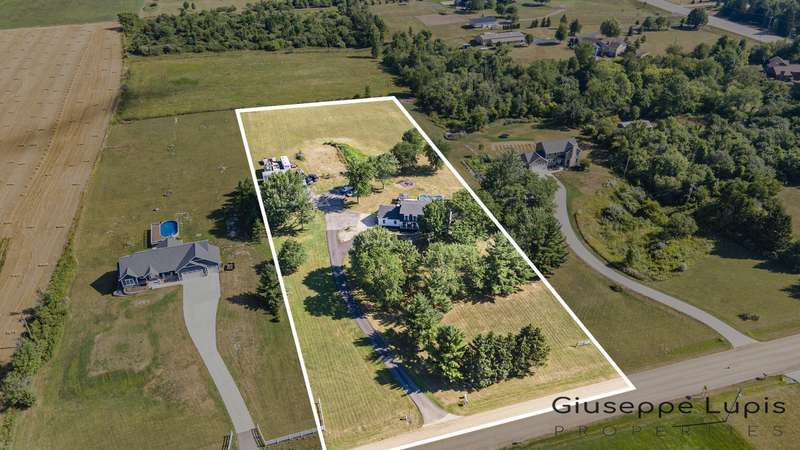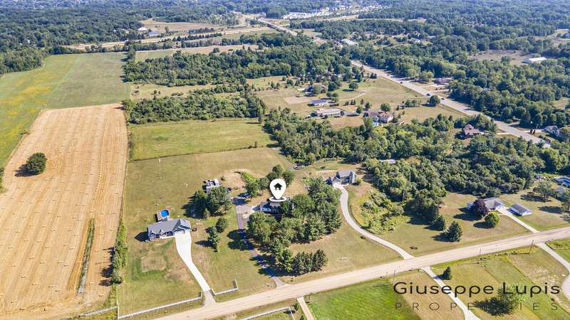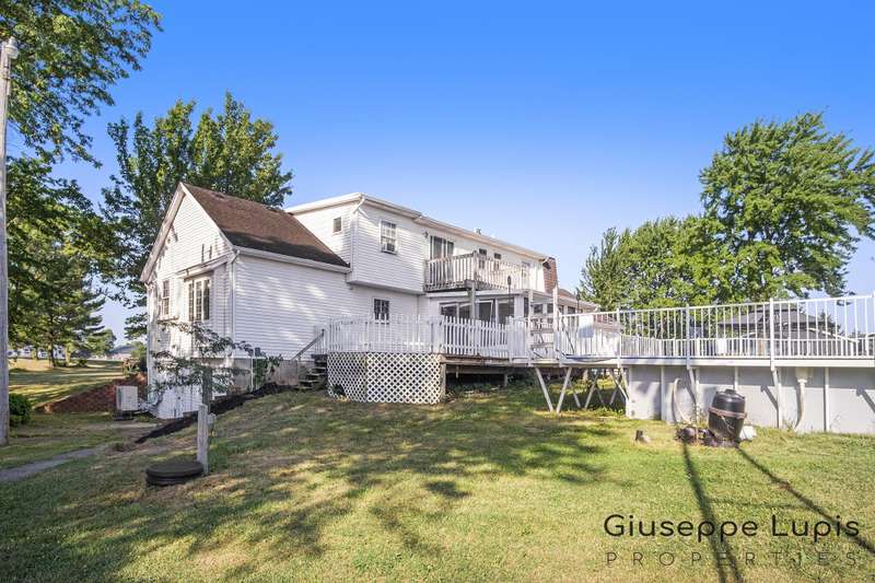 Nestled on a scenic 3.59-acre lot, this one-of-a-kind two-story home blends charm, functionality, and wide-open potential. Positioned near the center of the property, it offers privacy with a wooded front and a sunny, open backyard. Inside: 4 bedrooms upstairs, 2.5 baths, vaulted-ceiling living room, and a second main-floor space with a brick fireplace-ideal as an office or 5th bedroom. New carpet and vinyl flooring in most areas. Five new mini-splits provide efficient comfort. A three-season porch adds peaceful living space. Outside: 2-stall garage, large pole barn, two open sheds, vintage windmill, and a pool ready for a new liner. The freshly repaved driveway and generous yard make this a rare find!
