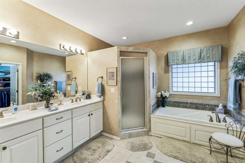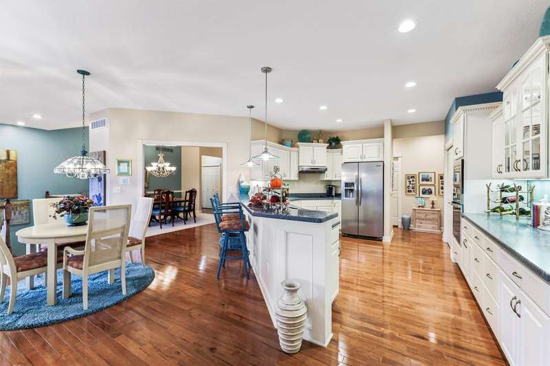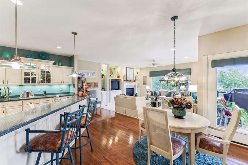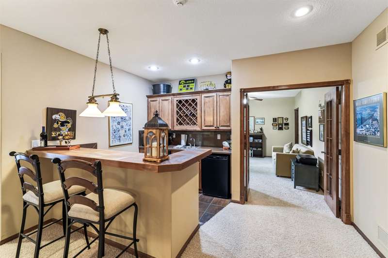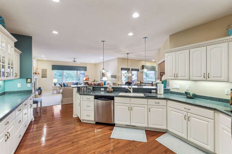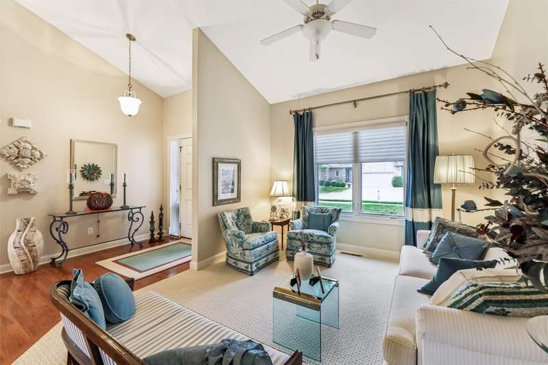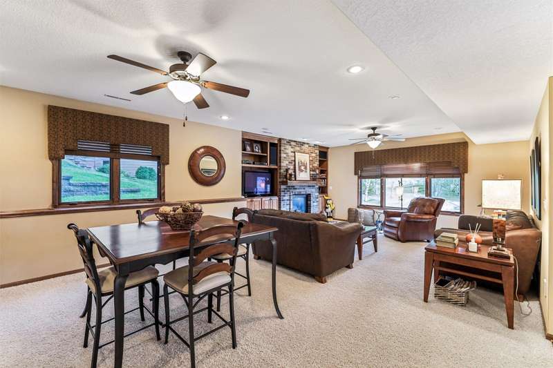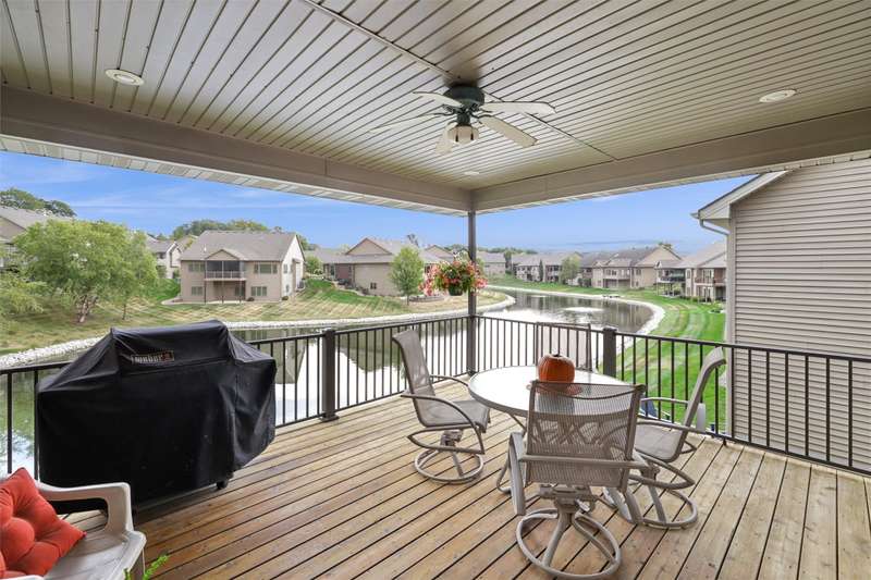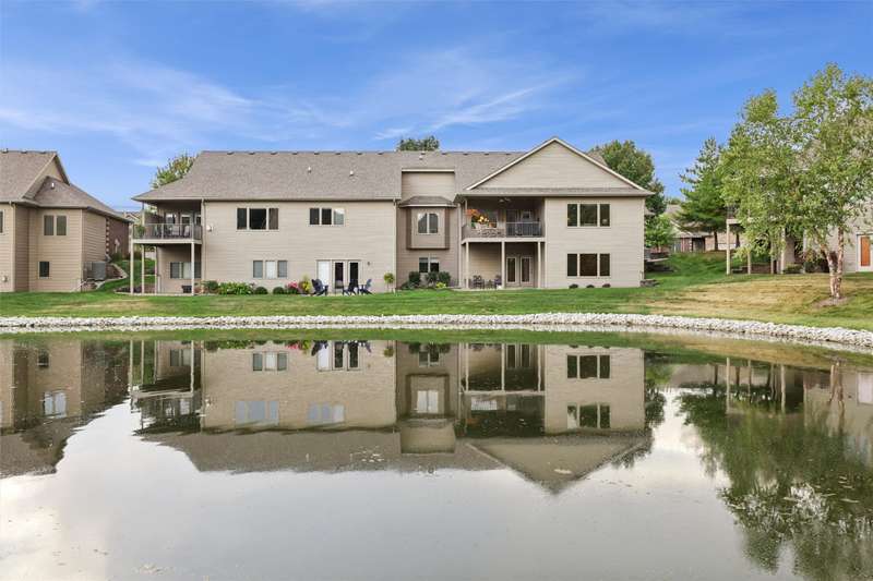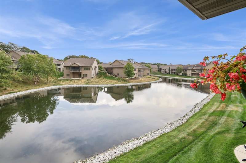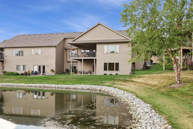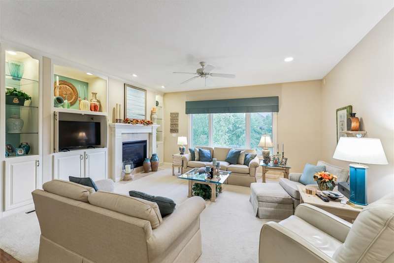 Tucked away from the bustle of busy streets, this beautiful Gratias built townhome offers privacy, serenity, & direct access to scenic bike trails. W/nearly 3c400 sq ft of finished living space, this rare find combines sophistication with comfort & space. Step inside to an open plan featuring hardwood floors, vaulted ceilings, a formal living room, & formal dining room. The kitchen boasts abundant cabinets & counter space, new quartz countertops (being installed soon), & all the appliances. Enjoy meals in the bright eating area or at the convenient breakfast bar. The great room centers around a fireplace with custom media cabinetry & opens to a covered deck w/new metal railing, overlooking the beautifully landscaped greenspace & tranquil pond. The primary suite is a retreat, complete with a soaking tub, walk-in tile shower, double vanity, water closer, & large walk-in closet. A guest bath & a laundry room w/ utility sink & washer/dryer included, sit just off the oversized 2.5 car garage, which features epoxy-finished floors & built-in cabinetry. This fin lower level is perfect for entertaining, offering a family room with fireplace, generous wet bar, 2 bedrooms (one w French doors that could make a great office or flex room), bathroom, & ample storage room.