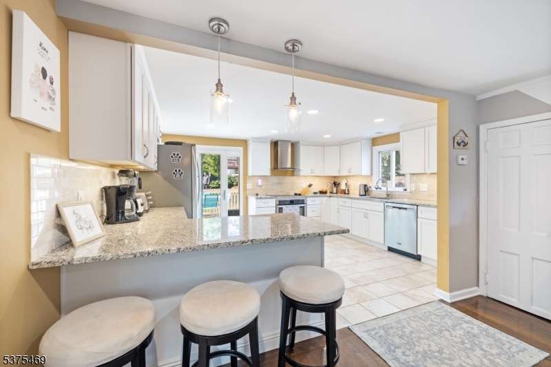 Beautifully Renovated 2,000 Sq Ft Colonial in Prime Location! This stunning home has been fully remodeled with a thoughtful addition, offering a spacious and modern layout in an ultra-convenient setting just 3 minutes from Route 80! Featuring 3 bedrooms upstairs and a potential 4th bedroom or home office on the main level, this home is perfect for flexible living or possible mother-daughter. Step inside to an open-concept floor plan filled with natural light and accented by gleaming hardwood floors and recessed lighting throughout. The chef's kitchen boasts striking tile flooring, stainless steel appliances, a drop-down sink, a lazy Susan cabinet, full breakfast bar, and sliding doors that lead to a large rear deck ideal for entertaining or relaxing outdoors. The home includes two beautifully updated full bathrooms, with dual sinks in the main bath and a full laundry room for added convenience. Upstairs bedrooms feature stylish dome lighting, and the full basement provides generous storage space. Outside, enjoy a spacious deck, patio area, attached storage shed, and an enclosed kennel area. Additional parking is available and a recreational area, park and ball field are just across the street perfect for active lifestyles. Don't miss this move-in-ready gem that combines comfort, functionality, and location! Multiple offers. Highest and best are due by Thursday evening.