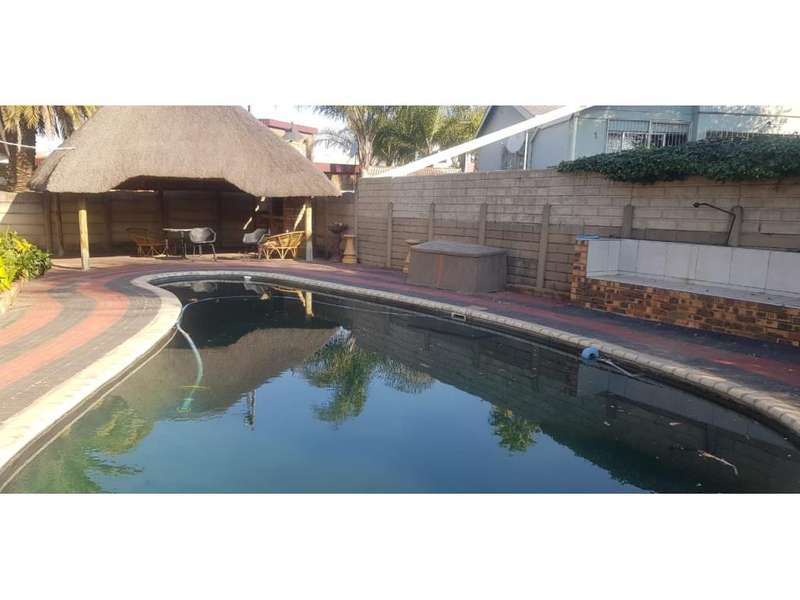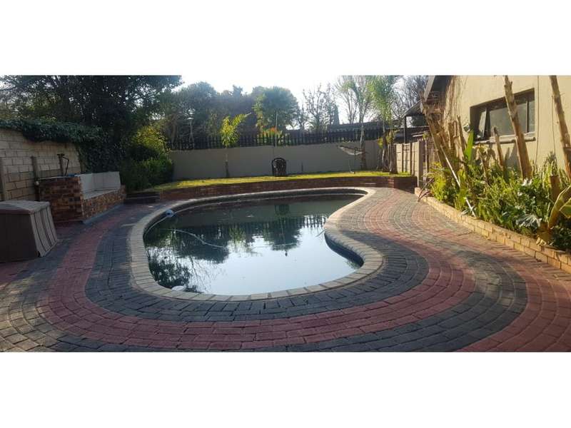 Welcome to this exquisite and expansive family home, a true haven for those seeking the perfect blend of comfort, style, and functionality. Nestled within a serene neighborhood, this residence offers an abundance of space and features tailored to accommodate the needs of a large family. As you step inside, you'll be greeted by an elegant entrance hall that sets the tone for the grandeur that lies within. The interior boasts a harmonious balance of modern design and timeless charm. Every detail has been carefully curated to create a welcoming atmosphere that caters to both relaxation and entertainment. The heart of the home is the spacious and well-appointed kitchen, complete with state-of-the-art appliances, ample storage, and a convenient laundry area. Adjacent to the kitchen, the dining room provides a picturesque setting for family gatherings and formal dinners alike. The living spaces are equally impressive. The lounge, adorned with tasteful finishes, centers around an inviting anthracite fireplace that exudes warmth and coziness, perfect for creating cherished memories on chilly evenings. Large windows throughout the house are dressed with elegant blinds, allowing you to effortlessly control natural light and privacy. With a focus on leisure and entertainment, this home offers an expansive entertainment area that seamlessly connects the indoors with the outdoors. The built-in braai and bar are destined to be the epicenter of celebrations, while the adjacent lapa and patio provide versatile spaces for al fresco dining and relaxation. The lush garden and sparkling pool create a private oasis for outdoor activities, offering a refreshing escape during hot summer days. The property is thoughtfully secured with an access gate, electric fencing, and a comprehensive CCTV system, ensuring peace of mind for you and your loved ones. This family-oriented abode boasts four generously sized bedrooms, providing ample accommodation for everyone. The main bedroom is a true retreat, complete with a luxurious en-suite bathroom, offering a tranquil haven for relaxation. Additional features that contribute to the allure of this home include a study with built-in cupboards, perfect for remote work or a quiet reading space. The property also includes a separate flatlet, ideal for extended family or guests, as well as staff quarters with a bathroom. Situated in close proximity to reputable schools and vibrant shopping centers, this residence offers the convenience of urban living while maintaining a serene suburban ambiance. In summary, this stunning and spacious family home is a true masterpiece, offering a lifestyle of comfort, luxury, and practicality. From the inviting living spaces to the meticulously designed outdoor areas, every facet of this residence has been crafted with the utmost attention to detail, making it the perfect sanctuary for a large family to create lasting memories together. Don't miss the opportunity to make this exceptional property your forever home.