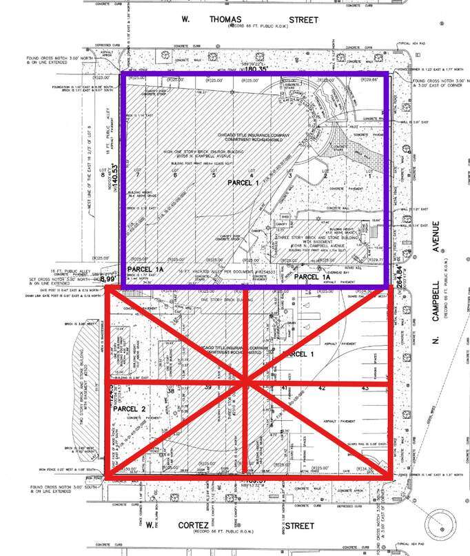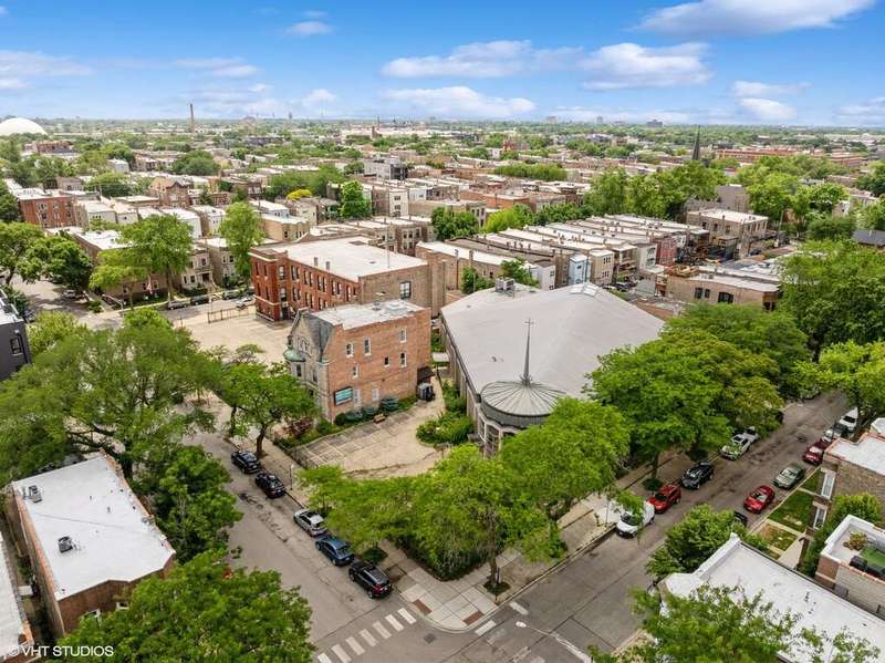 The subject consists of 7 platted lots including a vacated alley that runs parallel to Thomas and Cortez. The parcel is improved with a high, one-story church built in 1962 with 22' clear ceiling height. (The church is built on top of portion of the vacated alley) and a vintage, 2 1/2 story, greystone rectory. This parcel is the block-end of W. Thomas St., N. Campbell Ave & W. Cortez St. which allows for so much exterior light quite a bright spot in a high-demand area improved mainly with 100+yo two & three-flats and single-family homes with much in-fill construction as well as property renovation activity in the West Town Community Area on Chicago's near NW side - adjacent to Wicker Park, Humboldt Park & Ukrainian Village neighborhoods. The site is also zoned favorably in the RT4 class.