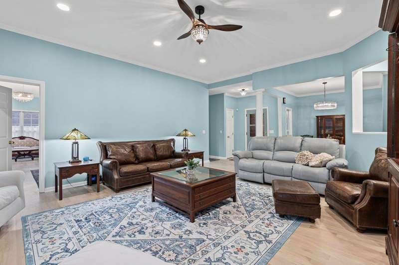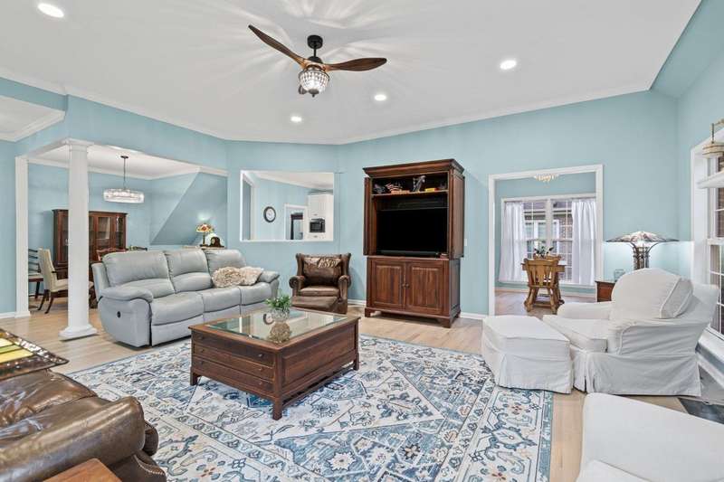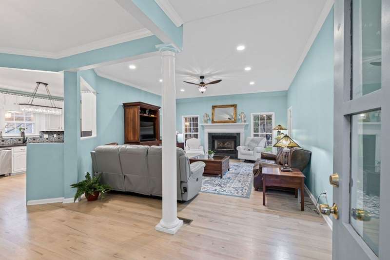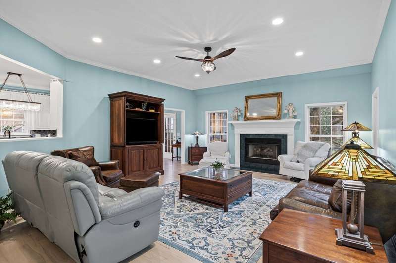 PRICE IMPROVEMENT!!! Highly sought after subdivision, Hunters Glen! You won't want to miss this elegantly renovated, single story oasis! This home has it all! New paint in every room, new flooring throughout the entire home, designer light fixtures in every room. Spacious Owners suite includes extra space for possible office/sitting/reading area, two walk in closets,new tiled shower, new sinks, toilets and light fixtures! Beautifully renovated chefs kitchen with new granite countertops and plenty of cabinets for storage. XLG stunning Fireplace in spacious living room. Large laundry room. Brand new Roof! Relax on your completely screened in deck in the backyard. Convenient stairway access from the garage to a roomy attic for bonus storage. Attached 2 car garage with sealed floor. All bedrooms are large and have high ceilings AND walk in closets! This house lets you live minutes from town and still feel like you live in the peaceful country!! Washer/Dryer and kitchen refrigerator to be included with a full price offer.