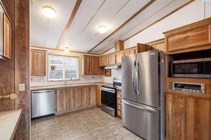 MLS# 282097 Enjoy low-maintenance living in this handicap-accessible 3-bedroom, 2-bath home in a well-maintained North Richland park. A wheelchair ramp provides easy access, and the open, split-bedroom layout offers flexibility to fit your needs. Updates include a new roof, fresh exterior paint, updated landscaping, and newer stainless steel appliances. A large shed is included, and pool membership comes with the home—making this a great opportunity to make it your own. Lot rent is $810 and includes water, sewer and garbage.