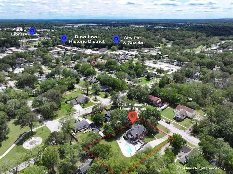 Historic Elegance w/Development Opportunity! Discover timeless charm & untapped potential in this beautifully preserved circa 1910 three-story home located in the heart of downtown Siloam Springs (see photos). Original wood floors, built-ins, & classic detailing merge with a thoughtfully designed modern addition featuring a gourmet kitchen, expansive family room, and primary suite. Set on a rare �¾-acre lot w/dual access (E. Cornell St.), this property offers exceptional development potential?ideal for subdividing or adding a second home/guest house. The spacious backyard oasis includes a covered porch, in-ground pool, and a detached garage/workshop?perfect for entertaining or future expansion. Recent updates: new roof (2022), paid-off solar panels, new pool pump, ion A/C w/humidity control under warranty, mini-split HVAC systems (July 2025), and more. Leaf-shield gutters (lifetime warranty) & a newer sump pump (approx. 2020) provide added value. Walkable to vibrant downtown Siloam Springs?live, develop, invest!