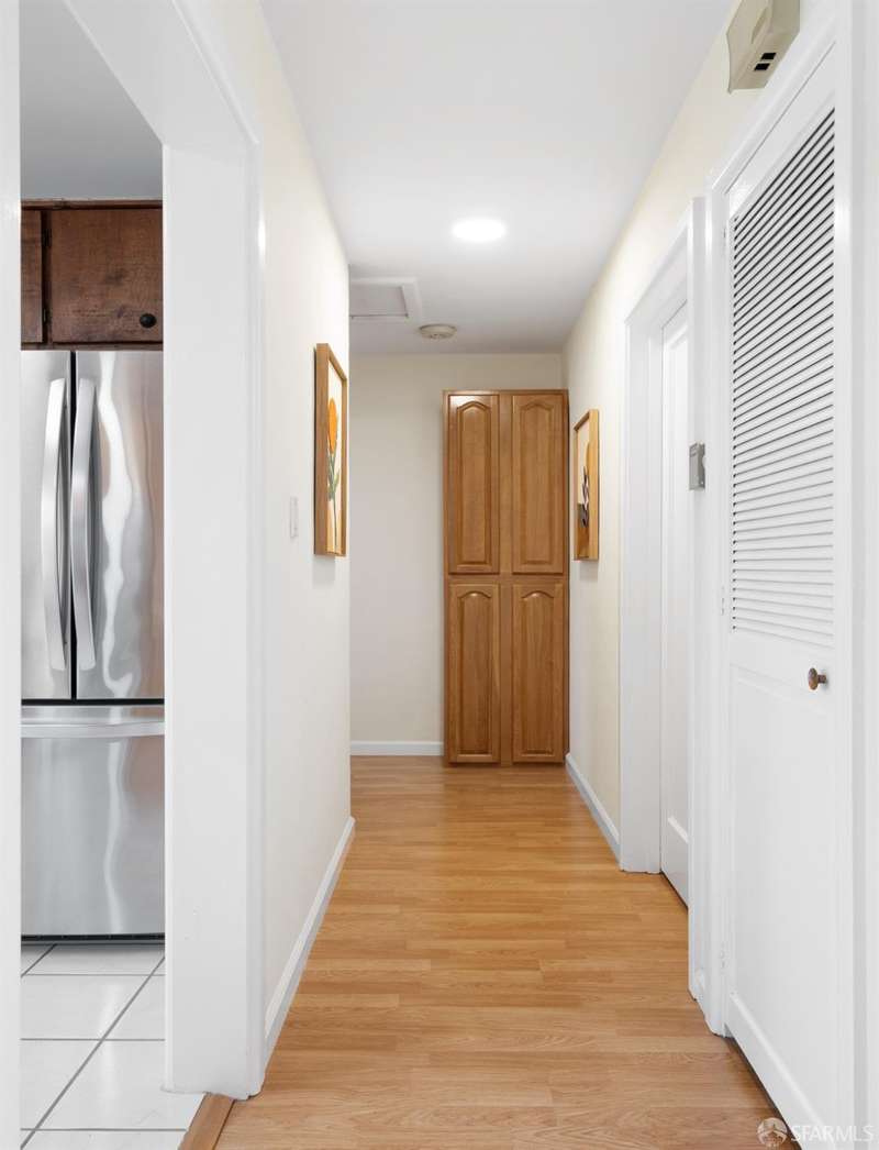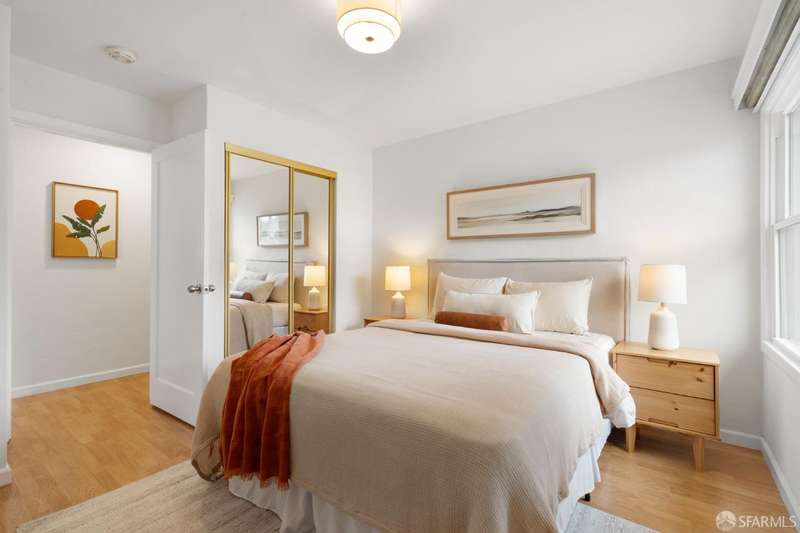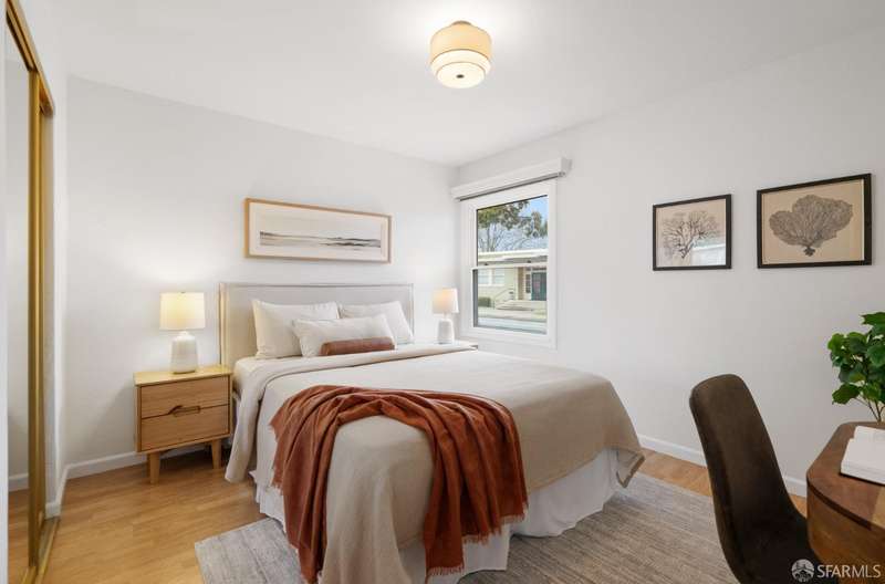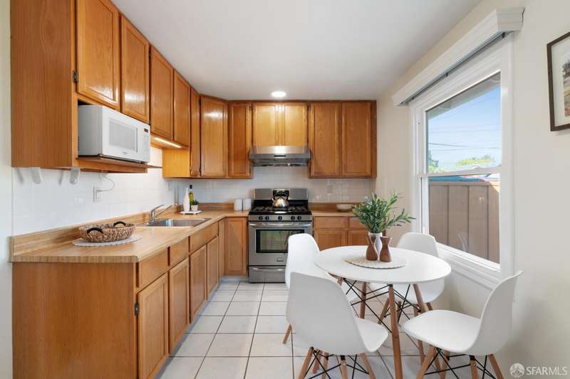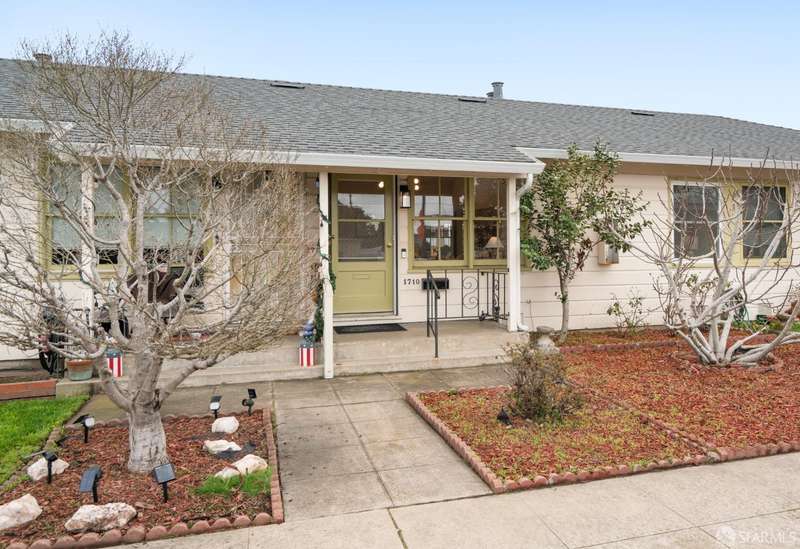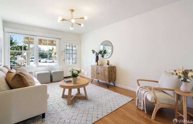 Discover the perfect blend of comfort and community in this charming 1bd/1ba bungalow within the sought-after Woodstock co-op in Alameda's West End! This delightful home welcomes you with a picturesque front entrance, adorned with vibrant plants and mature trees. Step inside to a warm and inviting living space, large windows that flood the room with natural light. The updated spacious eat-in kitchen boasts stylish refinished wood cabinets, and stainless steel appliances. Freshly painted inside with brand new lighting fixtures. Step outside to your private backyard oasis, perfect for relaxing and entertaining. Inside, the comfortable bedroom offers ample closet space. The modern bathroom, with its sleek glass shower door, pedestal sink, and chrome fixtures, adds a touch of sophistication. Community EV charging stations located just across the street! Permit parking for two vehicles is available in the front & rear of the property. Close to downtown Webster Street's many restaurants and shops. Easy access to the SF/Jack London Square ferries, Posey/Webster Tube, BART & freeways.