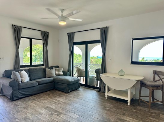 Enjoy Stunning Caribbean Sea Views from this gorgeous East End home. This recently renovated property features a 2-bedroom, 1-bathroom lower-level apartment. Highlights include 12KW generator with an automatic transfer switch, and hurricane impact windows/sliders throughout and power included up to $200. The home has an updated kitchen with ceramic wood grain tile, laundry in unit and updated bathroom.A perfect space, fully airconditioned with fantastic views! Internet is included.The upstairs unit is a 3 bedrooms, 2 baths unit, rented separately.