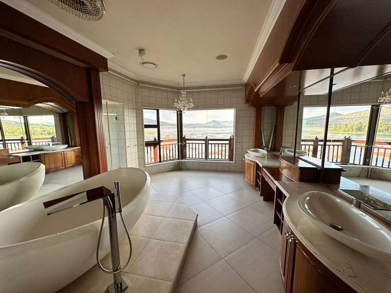 MANSION WITH VIEWS FOR DAYS......!!! Welcome to this mansion!!! In the most sought after Estate in the Great Hartbeespoort Dam. This stunning home overlooks the dam, with its bird sanctuary wild-life. U have 180 degrees of the whole Harties, the dam & the Magalies Mountain. This mansion is a masterpiece, meticulously designed, to provide a haven of comfort . Situated in a cul-de-sac & fully walled privacy and security are paramount. The structure of this building set on five levels, and brilliantly brought together by amazing staircases, with each level designed to incorporate wrap-around balconies. The main bedroom has a private lounge area..... which opens to amazing water views. A huge walk-in closet, and a full bathroom with luxury finishes. The other bedrooms are all en-suite with custom vanities and marble tops. The gourmet kitchen will bring out the master-chef in you . The property is equipped with essential amenities, such as a build in generator for un-interrupted power supply, a borehole with a storage tank, directly linked to the property, and three automated garages with space for seven vehicles. In addition there is a storage area, for boats and jet-skis, enjoy optional comfort with air conditioning, and under-floor heating throughout the home . This property can only be viewed by appointments only . Call me for any exclusive viewing.....