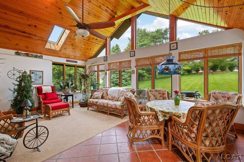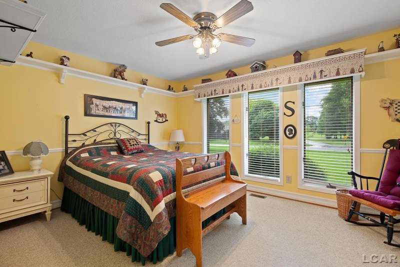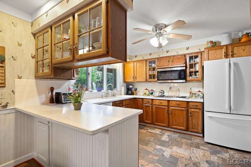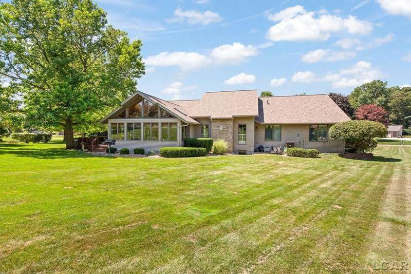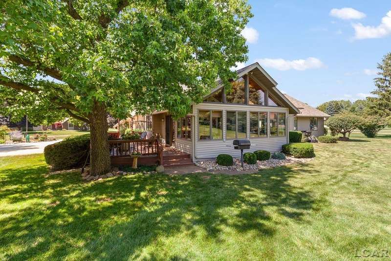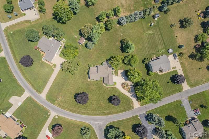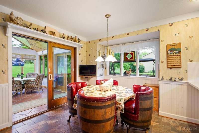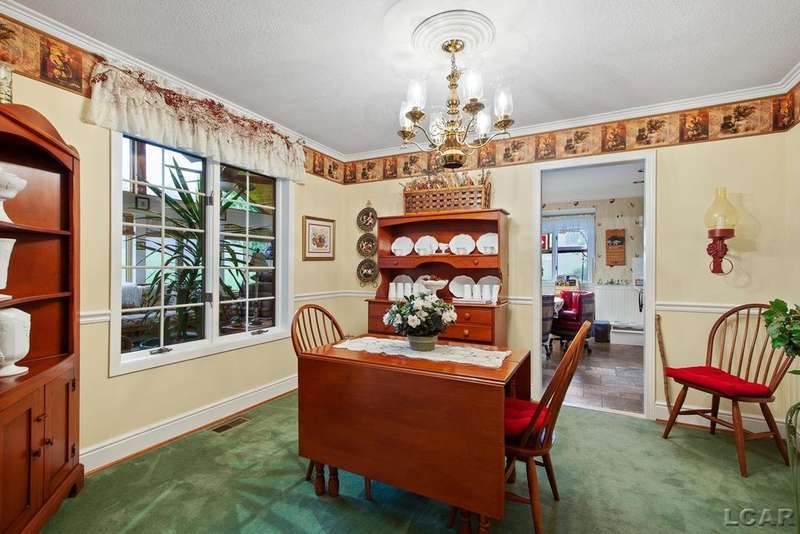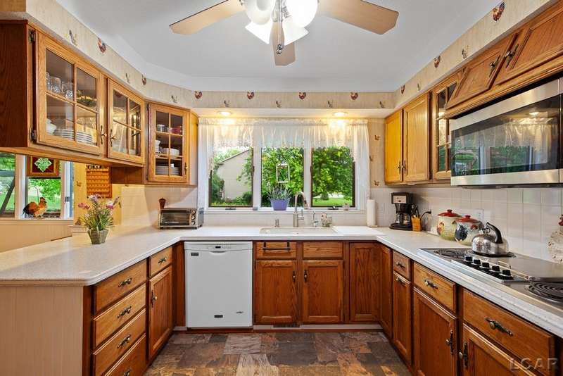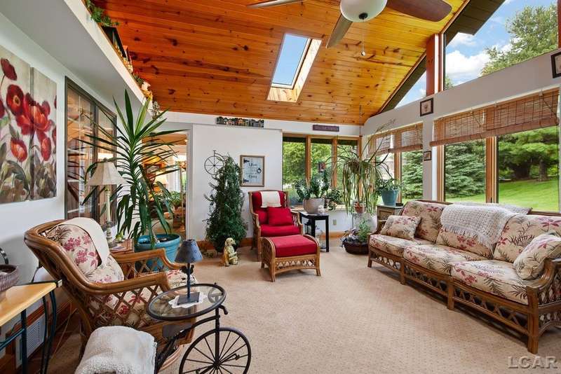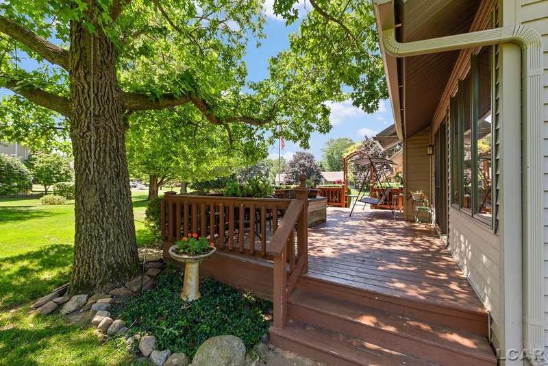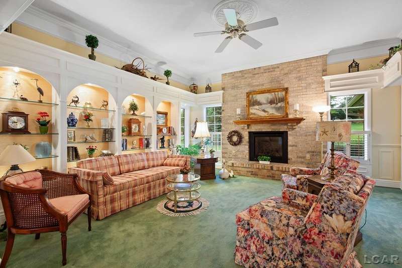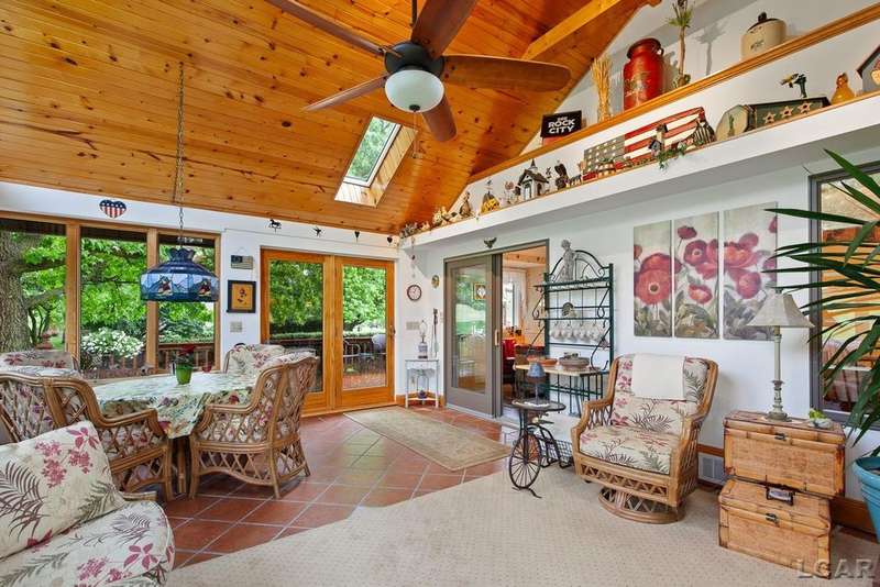 NO DOUBT YOUR DESIRE TO OWN THIS HOME will happen the moment you step into the front entry introducing tile & hardwood floors and where pillars separate the foyer from the stately living room with a full wall of display shelves and gas fireplace. Just under ONE ACRE PREMIER LOCATION IN HAWTHORNE HILLS SUBDIVISION on the Northside of Tecumseh Township with boulevard entry into the subdivision directly across from Tecumseh Golf Club. Long time Owner of this Immaculate, 3 bedroom, 2 full baths+ 2 half baths, Ranch style Dream Home clad with crown moldings, wainscoting, shelving, coffered ceilings, and heavy detail work handcrafted by a true woodworking artisan who knew how to add architectural interest to the home! If you like to entertain.....bring on the guests to the 20x14 three-season room showered with many windows and the beauty of a wood cathedral ceiling, tile floor, and a collection gallery area. Also, be prepared to behold a stunning finished basement complete with 19x16 Family room with gas fireplace, coffered ceiling, egress window, with french doors leading into a very special 30x22 recreation room boasting....eye-catching wall detail, more crown molding, 1/2 bath, and a FIVE STAR wet bar. Newer items Include: roof, furnace, central air, washer, refrigerator, microwave, kitchen sink, fireplace insert. Highlights Include: concrete driveway with flower garden area, first floor laundry room, finished basement, extra large three-season room, two gas fireplaces, dining room, kitchen & breakfast nook combination, corian solid surface kitchen counter top, and backsplash plus many closets throughout the home and garage. Make this your own SHOWPLACE!