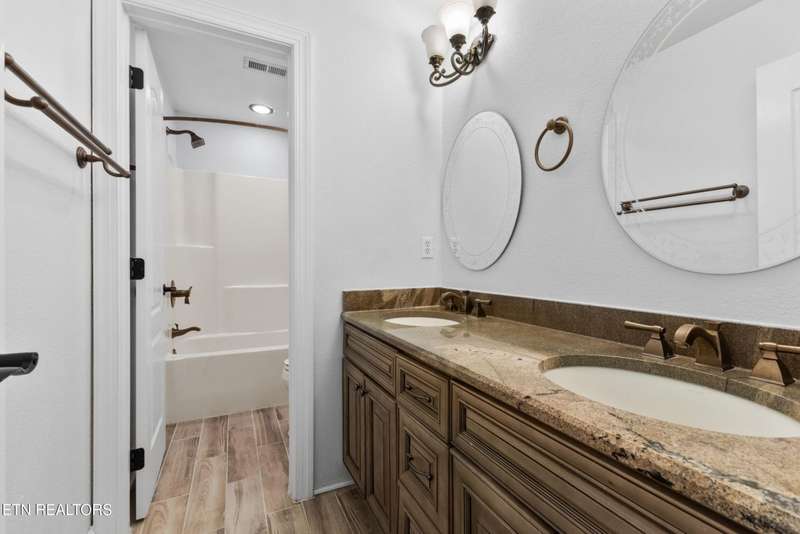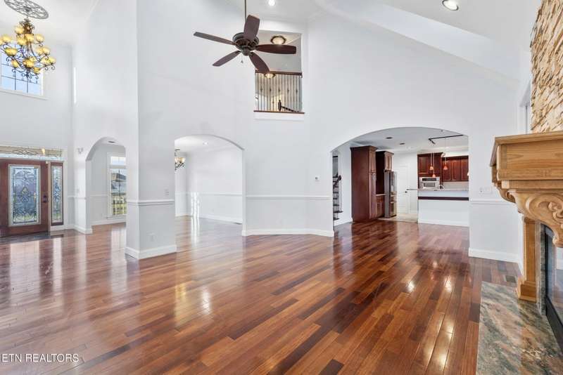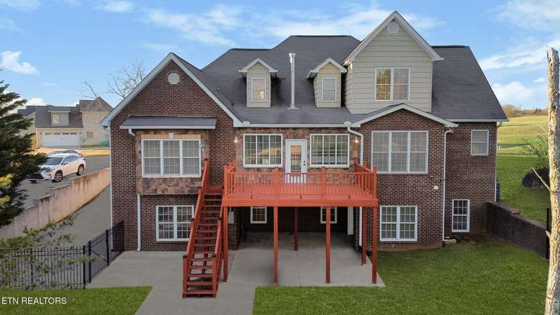 Welcome to this stunning 5-bedroom, 5-bathroom home located in the highly sought-after Cedar Ridge Subdivision. Situated just 45 minutes from downtown Knoxville, this property combines the charm of a peaceful neighborhood with the convenience of nearby amenities. Enjoy the beautiful disc golf and dog park located right across the street and the proximity to Merchants Greene, Morristown's newest hub for commercial and medical services, just five minutes away. This home is built to last, featuring thick poured concrete walls, craftsman-style trims, and exceptional attention to detail. The interior boasts soaring ceilings, including a dramatic 20'+ foyer and main room, over 10' ceilings in the master suite, and high ceilings throughout. The thoughtfully designed master bathroom includes a porcelain-tiled shower with heated flooring for ultimate comfort. There is an additional master suite upstairs. All bedrooms feature newly installed hardwood flooring, adding elegance and durability. The walk-out basement is a showstopper, offering abundant natural light, a theater room, a covered patio, a full bar, and even a panic room for added security. Recent updates completed by the prior owners include luxury vinyl plank (LVP) flooring in the basement, fresh paint throughout, new porcelain tiles, modern appliances, and more. Additional upgrades include granite countertops throughout, stainless steel Whirlpool appliances, manifold cut-off Pex plumbing system, 2-year-old gas water heater, and HVAC system. This home is truly move-in ready, offering a rare combination of luxury, functionality, and modern updates. Don't miss your chance to own this exceptional property. Call today to schedule your private showing!