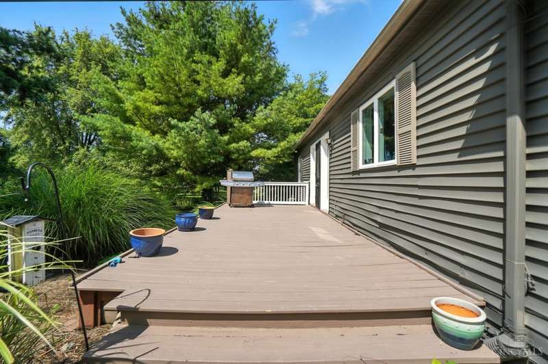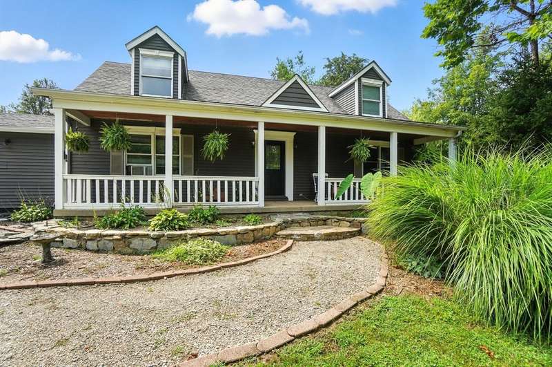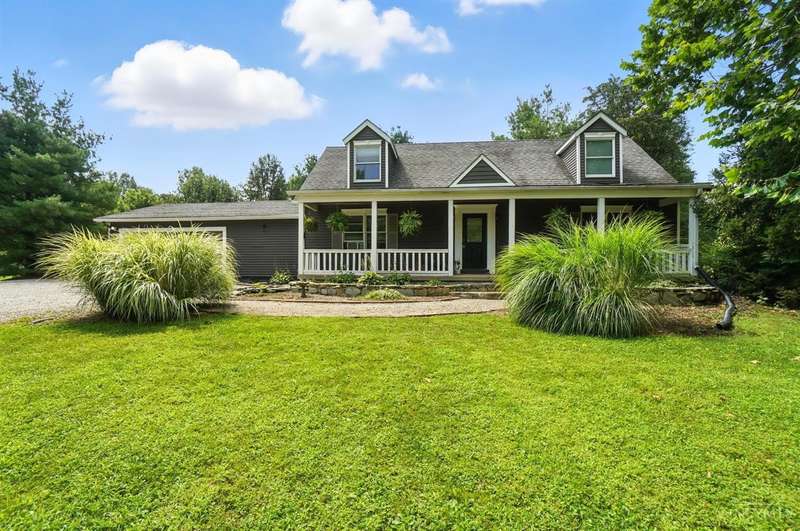 Private, wooded retreat on 1.67 acres! Charming Cape Cod offers peace and privacy down a long shared drive. Enjoy quiet mornings on the full covered porch. Spacious kitchen w/ granite, full appliance package, pantry, bar seating & laminate flooring. Cozy dining room features gas fireplace & walkout to deck/patiogreat for gatherings. Large great room perfect for relaxing or entertaining. First-floor primary w/ private half bath + adjacent full bath; 2nd main-level BR ideal for guests. Upstairs: 2 spacious BRs & full bath. Walkout basement partially finished w/ laminate flooring & bath rough-inready to customize! Large 1st-floor laundry, 2-car garage. Lebanon Schools. Convenient to town, highways & shopping. Bonus: Adjacent 2.68-acre wooded lot (MLS#1850287) also available for $150Kexpand or enhance privacy! Sold As-Is.