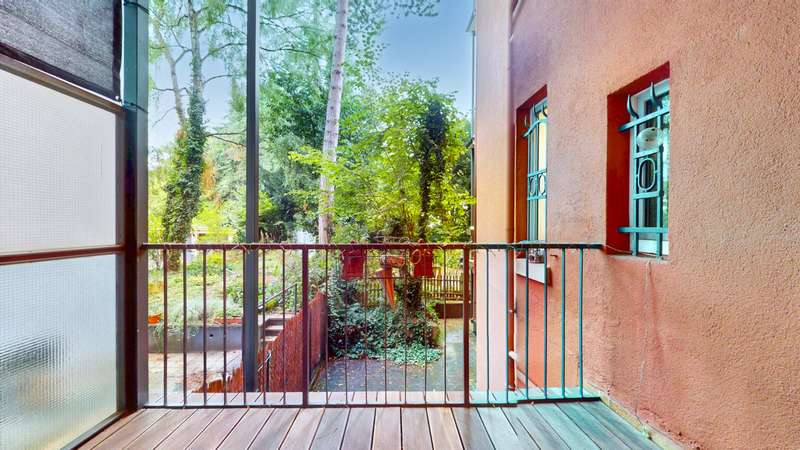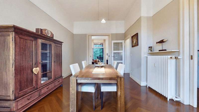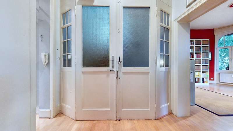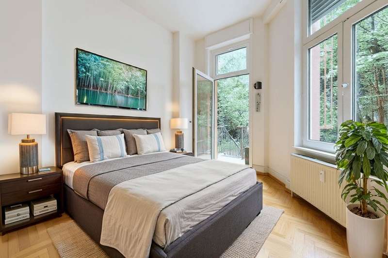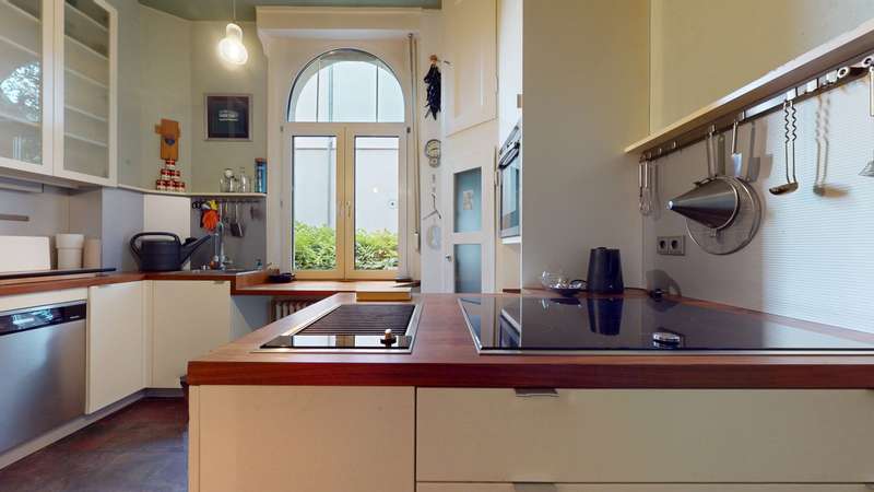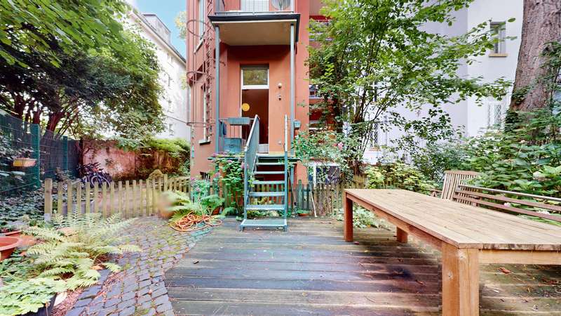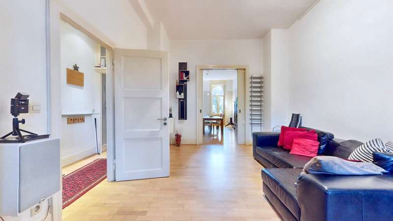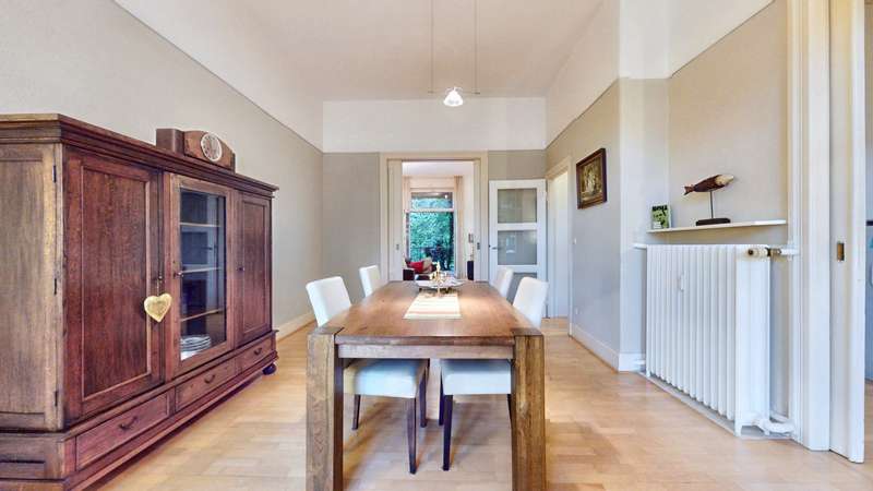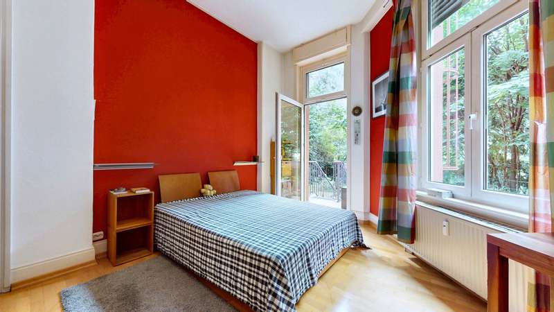 This charming five-room apartment is located in a historic Wilhelminian-style building with a magnificent, stylishly designed façade. Located on the mezzanine floor, this residential floor enjoys the exclusive special right of use of a small, idyllic garden at the rear of the building - a green oasis of peace in the middle of the city. The classic floor plan of the old building with five rooms, some of which are connected by elegant double doors, lends the rooms a special aura and timeless elegance. The spacious living room with its charming bay window opens onto another large room and creates a prestigious atmosphere for entertaining and dining. A third room with access to the balcony and a view of the peaceful garden is ideal as a bedroom, guest room or study. Two further rooms, currently used as bedrooms, as well as a daylight bathroom and a separate guest WC round off the space on offer. The modern eat-in kitchen, fitted in 2012 with slate flooring, cooking island and high-quality appliances, combines comfort and coziness in a stylish way. The balcony and a small staircase lead directly into the garden - a cozy retreat to relax and enjoy. High ceilings, elegant parquet flooring, classic style elements and double doors underline the special character of this old apartment. Thanks to the versatile room layout, it is suitable for both couples and families and is perfect for implementing individual living ideas. A real residential gem in an urban, central location in Holzhausen-Nordend - with lots of charm, quality of life and potential!