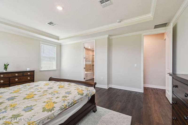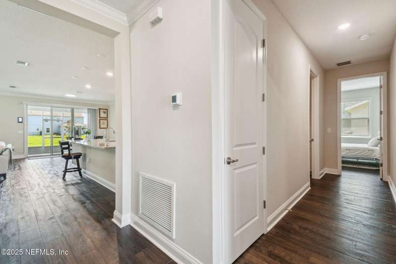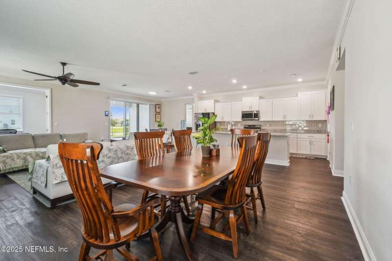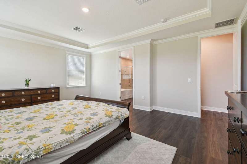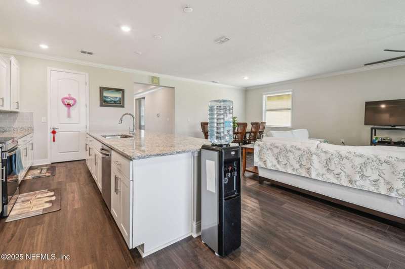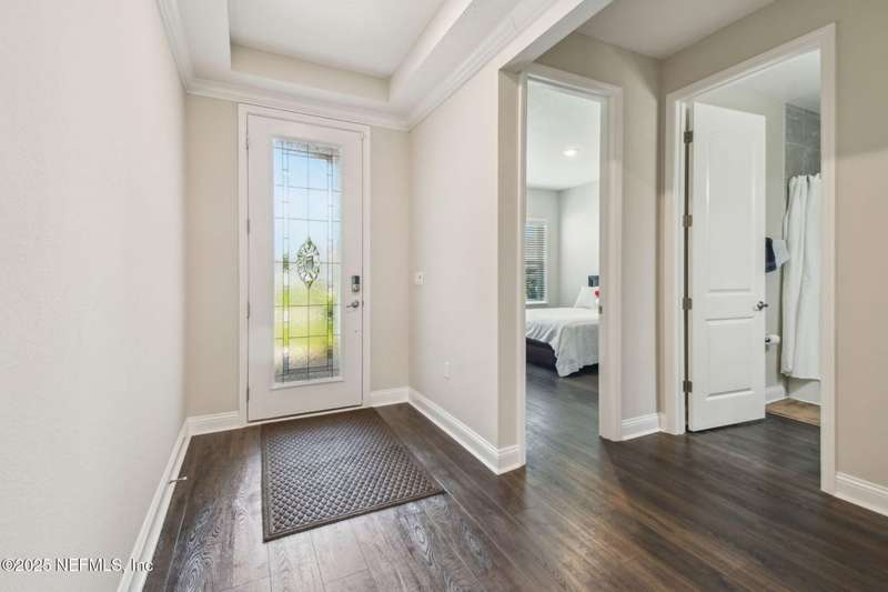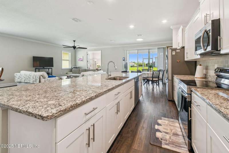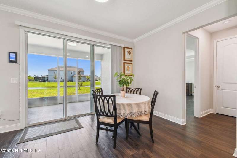 Welcome to this stunning 4-bedroom, 3 bath home with two primary suites in beautiful St Augustine, just minutes from downtown and I-95. This spacious residence features all vinyl plank flooring throughout and includes a versatile flex space perfect for a home office. The gourmet kitchen boasts a massive island, ideal for entertaining, and opens to a living space with serene water views. Enjoy your mornings and evenings on the screened lanai overlooking the water and nature.The main primary suite offers a luxurious retreat with a soaking tub, separate shower and large walk in closets. A 3-car garage includes an electric car charger for your convenience.The home is equipped with keyless entry, a whole house water filtration system and high speed fiber internet.Located in a community with low HOA that includes access to a pool and park. Don't miss this move-in ready home combining comfort, technology and a prime location.