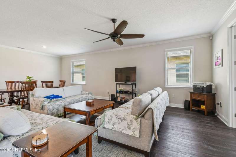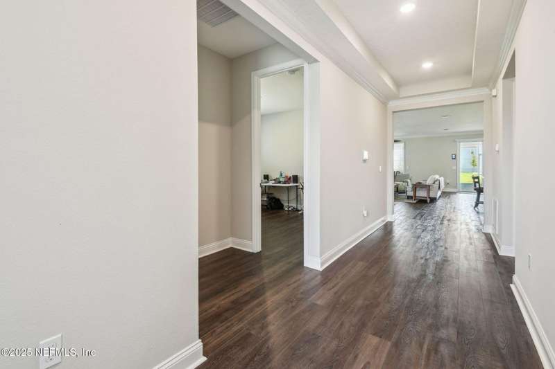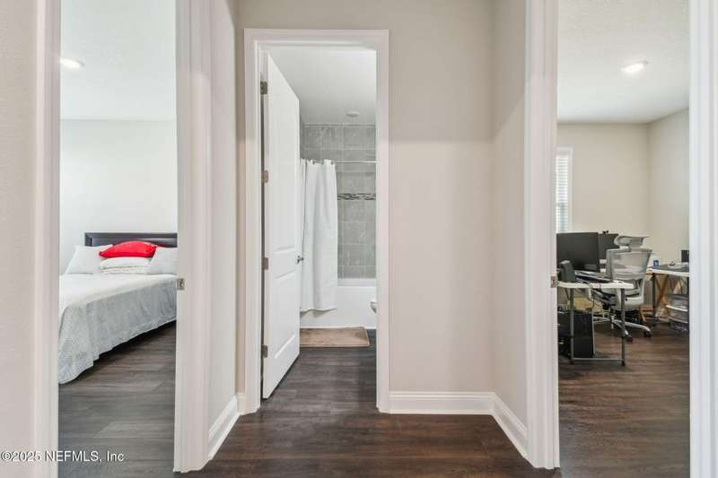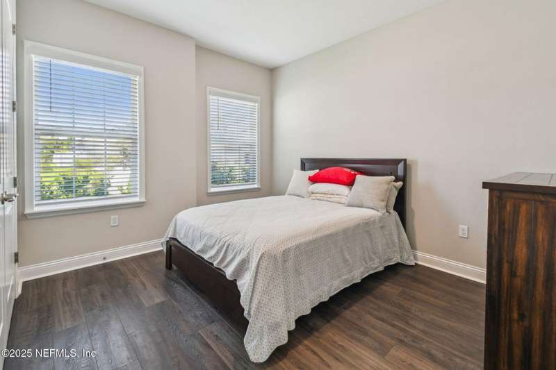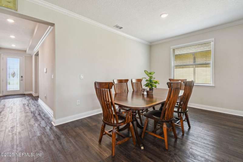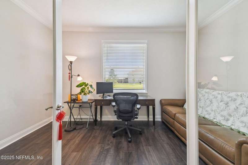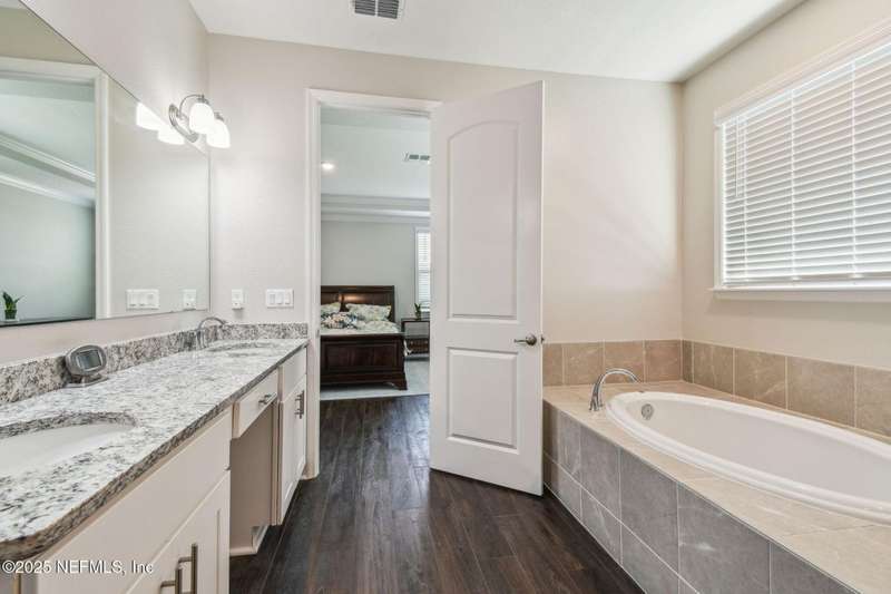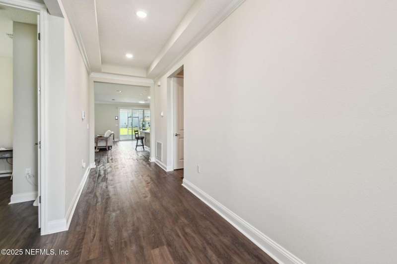 Welcome to this stunning 4-bedroom, 3 bath home with two primary suites in beautiful St Augustine, just minutes from downtown and I-95. This spacious residence features all vinyl plank flooring throughout and includes a versatile flex space perfect for a home office. The gourmet kitchen boasts a massive island, ideal for entertaining, and opens to a living space with serene water views. Enjoy your mornings and evenings on the screened lanai overlooking the water and nature.The main primary suite offers a luxurious retreat with a soaking tub, separate shower and large walk in closets. A 3-car garage includes an electric car charger for your convenience.The home is equipped with keyless entry, a whole house water filtration system and high speed fiber internet.Located in a community with low HOA that includes access to a pool and park. Don't miss this move-in ready home combining comfort, technology and a prime location.