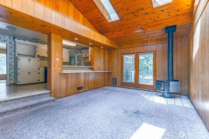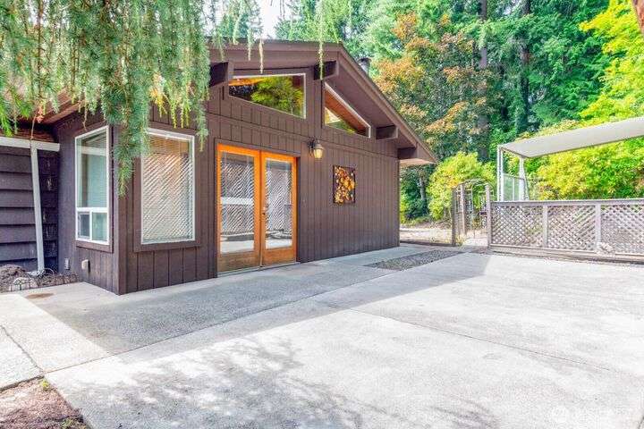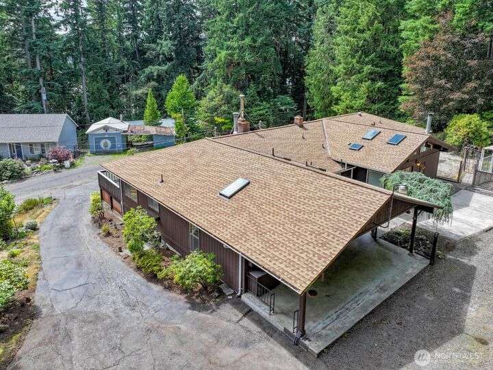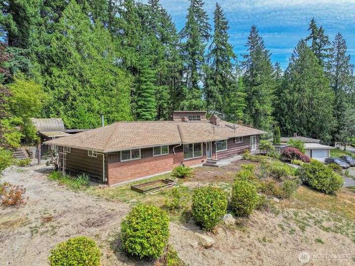Lower Marine Drive, mid-century, one-level home--ready for your vision & fresh paint. Home lives large! Restored, inspected 4-bed septic completed 2025, Heat pump & insulation 2024, Roof in 2021- .57-acre lot w plants & evergreens. 2 car detached garage w/shop has finished loft space above for storage & office. Home has primary bedroom ensuite; 2nd kitchen & family room was used as private living space. Main living room next to family room warmed by beautiful fireplace. Formal dining room, bath & 3 additional bedrooms. Vaulted sitting room with French Doors off patio & adjacent to main kitchen. Located just 10 minutes from Seattle Ferry & Shipyard. Super easy access highways & Naval Bases! Near schools, restaurants, shopping & healthcare.