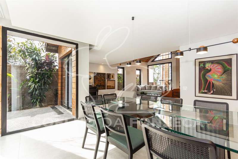Excelente casa toda reformada, com materiais de última geração e de muito estilo. Iluminação por domus na sala de pé direito duplo e quartos em mezanino com aproveitamento do pé direito dando uma inclinação charmosa e elegante. Jardim grande possibilitando até ter piscina e hoje com arvores frutíferas. Sala de ginástica. Home com vista para Cidade Jardim e quartos amplos, todos são suítes com banheiros impecáveis e lindos. Espaço Gourmet e sala de jantar integrados com projeto de iluminação.