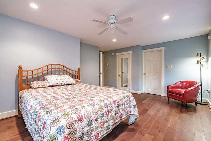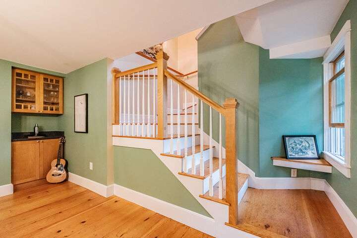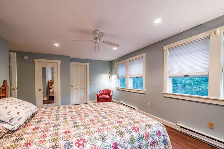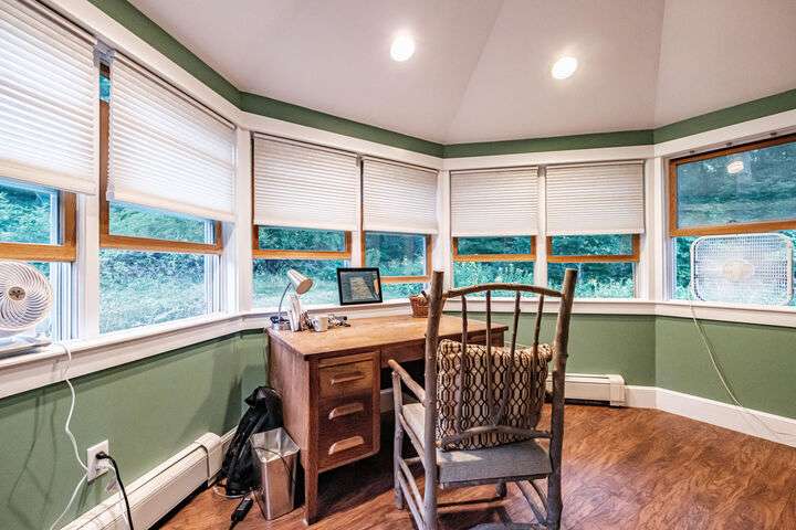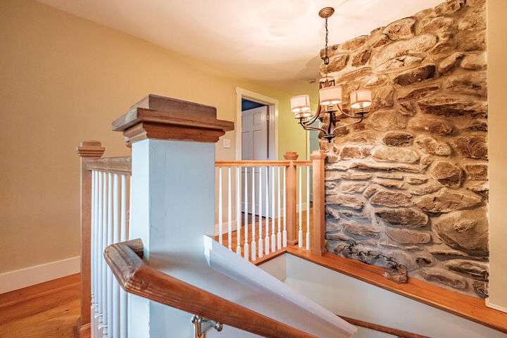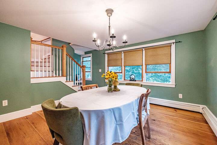 Quiet and serene, this 4-bedroom, 3.5-bath historic colonial spans 2,700 square feet and sits on a 4-acre lot directly across from the Bear Trail & entry into Pratts Brook Park. The home features a versatile first-floor suite—ideal as a primary or guest space—plus an additional upstairs bedroom suite with a newly remodeled bathroom and walk-in closet. Original pine floors, a private home office overlooking the backyard, and striking stonework up the staircase. The mudroom entry with closet connects to a spacious 2-car garage that includes a staircase to the attic for additional storage. Located in a rural neighborhood this property offers a blend of privacy, history, and convenience. ** Twilight open house this Friday 8/29 5-6:30PM