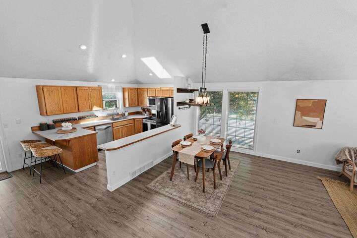 Location, Location, Location. This beautiful contemporary home in Westgate Village is mere blocks from Riverside State Park with abundant trails for biking, hiking, trail running or simply enjoy relaxing next to the river. With a total of 5 bedrooms, 3 baths and over 2800 sqft, this home offers a warm, inviting, open concept with vaulted ceilings, an abundance of natural light and a large family area off the kitchen. New interior paint, tile shower in master bath, along with new water heater in 2025 and AC in 2021. The fenced backyard leaves ample space for pets or kids to play, and covered porch is ideal for entertaining. The 2-car garage is extra deep to accommodate all your toys. Don't miss out on the opportunity of a lifetime bring your bikes, boat, paddle boards and immerse yourself in an amazing neighborhood backed by community.