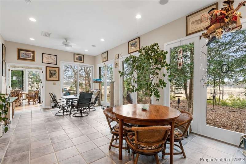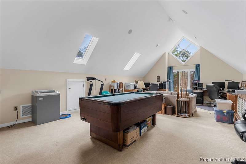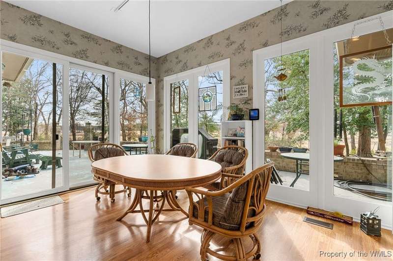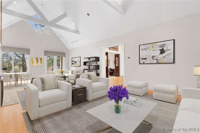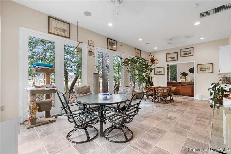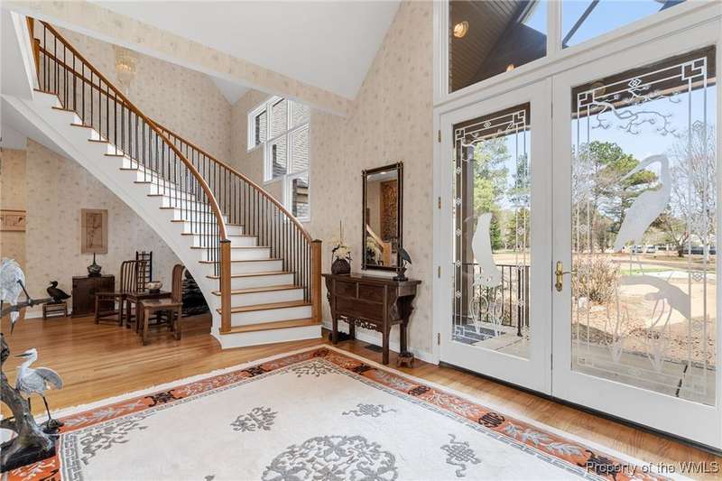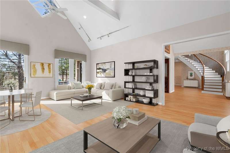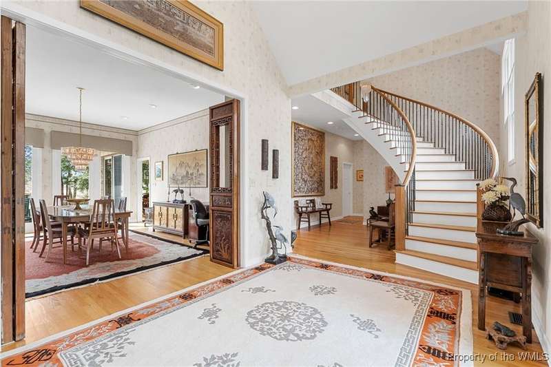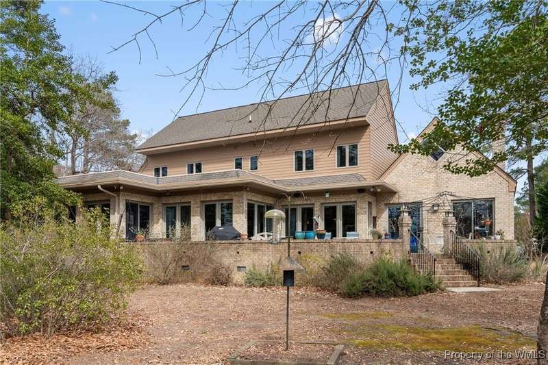 Welcome to this exquisite contemporary home. As you enter you will quickly notice the cathedral ceilings with Natural light beaming through, living area with tremendous amount of space, formal dining and the elegant curved stairwell with a gorgeous chandelier hanging above, numerous oversized and alluring pieces of artwork. Each room flows beautifully into the next. The kitchen is the heart of the home with a large center island and breath-taking views of the Chickahominy River with tall sliding glass doors to the back patio. Connected just off the kitchen is the sunroom and primary bedroom. The primary comes with a very spacious walk in closet. you will not find another home like 276 Colony Trl, Original owners that also designed and built the home paying attention to every detail. This home features over 5000 Sqft, 3 bedrooms, 4 bathrooms, 1.04 acre. Home is also equipped with surround sound throughout and a place you will want to call home.