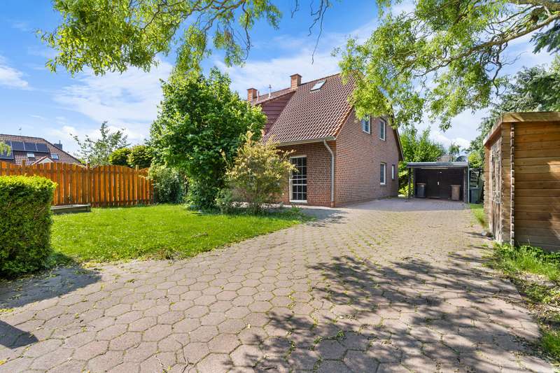 Welcome to Hohenkirchen - only a few minutes from the Wangermeer and approx. 12 minutes by car to the North Sea beaches. The house offers approx. 120 m² living space, 20 m² terrace, fireplace, 3 bedrooms, 2 bathrooms and a converted attic (usable space) with continuous staircase. Carport plus two parking spaces complete the offer. The house was built in 1995 in solid construction and convinces with a well thought-out layout. On the first floor, you are welcomed by the very spacious and cozy living room with fireplace, which creates a comfortable atmosphere. From here, you have direct access to the sunny terrace and the low-maintenance garden - ideal for spending relaxing hours outdoors. The kitchen offers enough space for a cozy dining area. There is a washing machine connection in both the shower room and the utility room. The utility room also serves as a storage and laundry room. Upstairs there are three bedrooms and a daylight bathroom with bath and shower. The converted attic provides additional usable space and is ideal as a home office, playroom or guest sleeping area. One particular advantage is the full access: the staircase continues up to the attic without interruption, so there is no need for a loft ladder. The house comes with a carport and two additional parking spaces. The location combines tranquillity and short distances: In the immediate vicinity you will find shopping facilities, school, kindergarten, doctors and leisure activities. The Wangermeer with its bathing beach can be reached in a few minutes, the North Sea coast with Schillig, Hooksiel or Horumersiel in around 12 minutes by car. The house has always been well maintained and individual modernizations can be carried out according to your personal taste. You can create your own individual feel-good home at an attractive price-performance ratio.