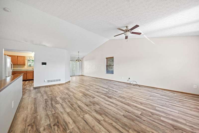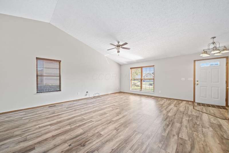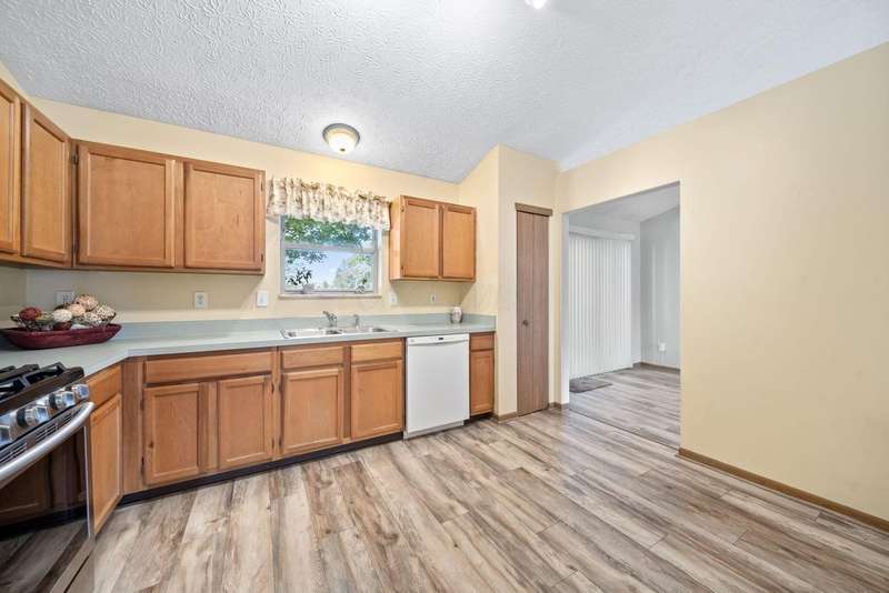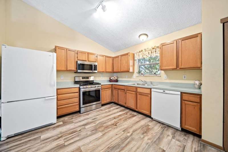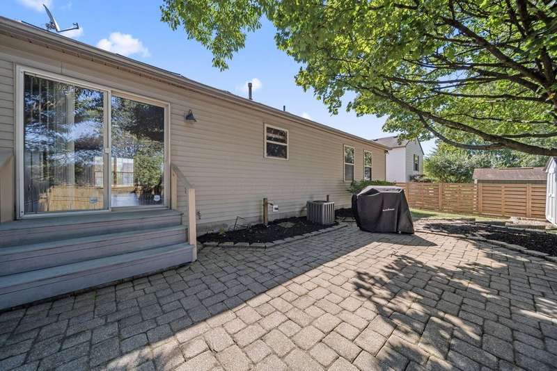 Super cute ranch! Beautiful landscaping design creates a warm welcome as you approach the home. Oversized eat-in kitchen features tons of cabinets & a new stainless steel stove & microwave. Freshly painted great room with vaulted ceilings, new LVT flooring in great room, dining area, hall & kitchen, security system w/cameras remain, 1st floor laundry (washer & dryer remain) & a partially finished lower level. Owners suite offers a walk in closet & adjacent full bathroom with shower. If you desire privacy then you will love this back yard! The yard is fenced with a HUGE paver patio, landscaping beds & shed.
