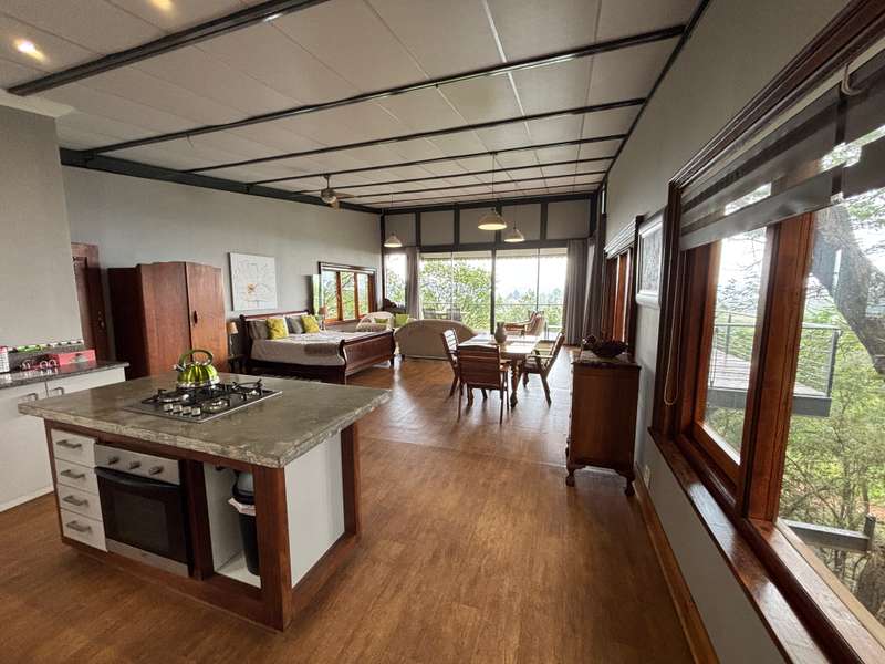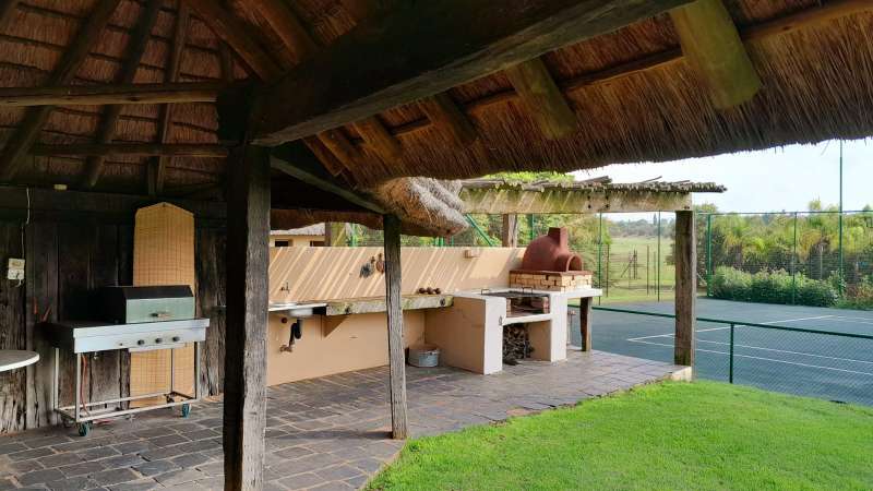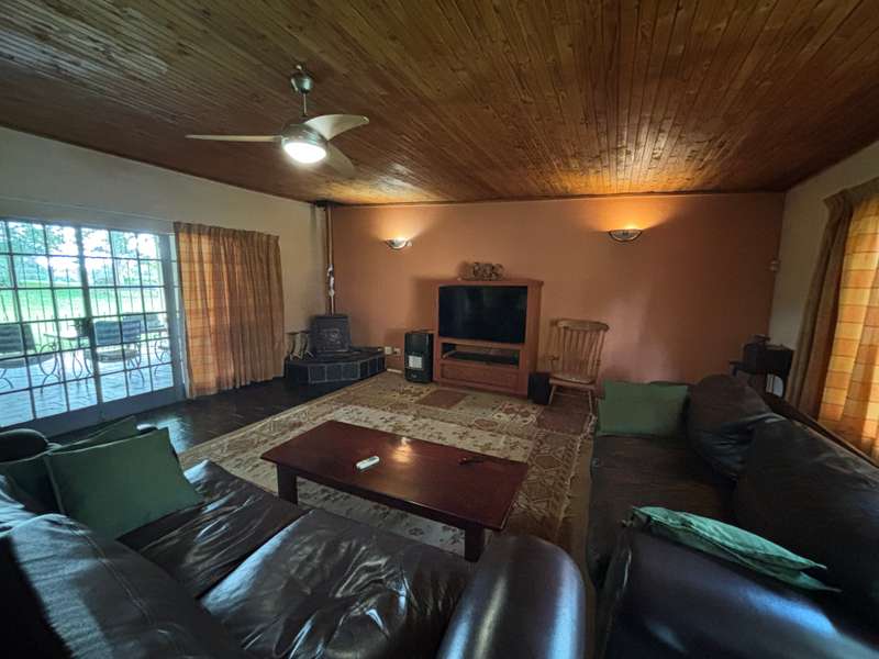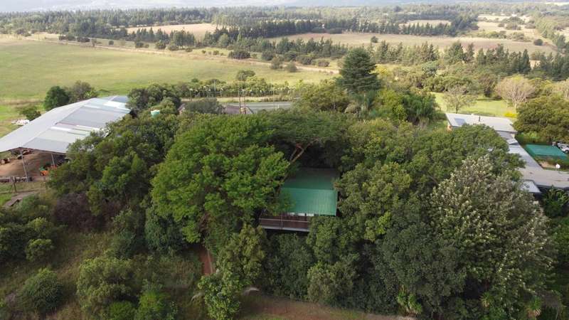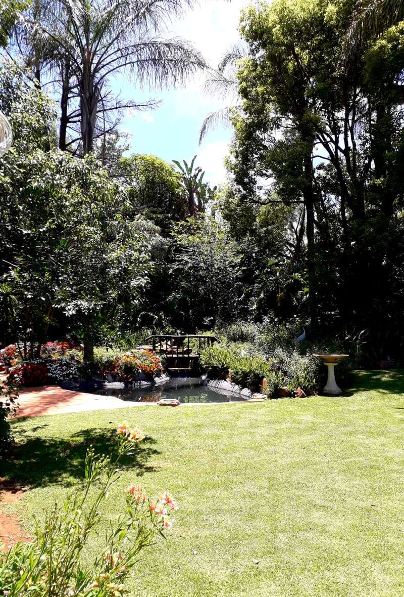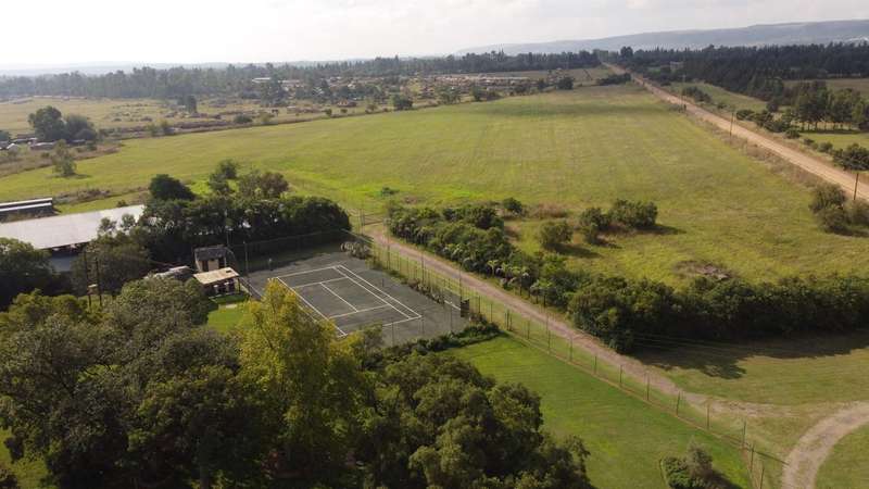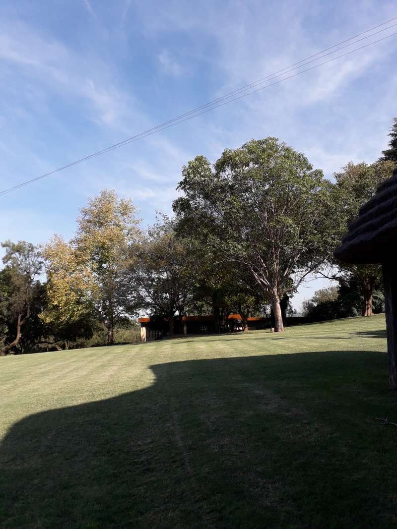 Big farmhouse with pool and tennis court and lapa with braai and pizza oven, all nestled in a landscape garden with rolling lawns. Five bedrooms with big kitchen and gas hob and electric oven, dining room, lounge and secure stoep. Five garages and two carports. A lot of outbuildings and Treetop Flat that can be utilized as Air B&B. There are bedrooms with bathrooms and kitchens with decks overlooking the pristine bush. Sleeps 22. Tshwane power, 80 KVA and a standby 10 KVA generator, all electric fenced with chain-link on the inside with armed reaction, an alarm with remote controlled gates. For the farmer there are two sheds, one 600 sq meters and the other is 900 sq meters together with a lockup storeroom. Two equipped boreholes, 8000 and 22000 liters per hour. A big reservoir, 6 ha pastures with irrigation and 5 ha dry land pastures. Also, a large portion of pristine natural bush, ideal for small game with a dam and natural spruit.