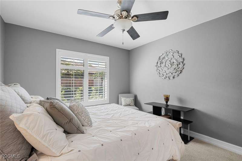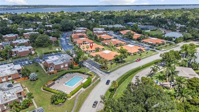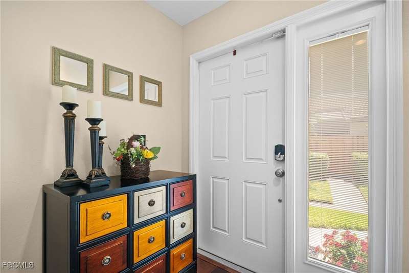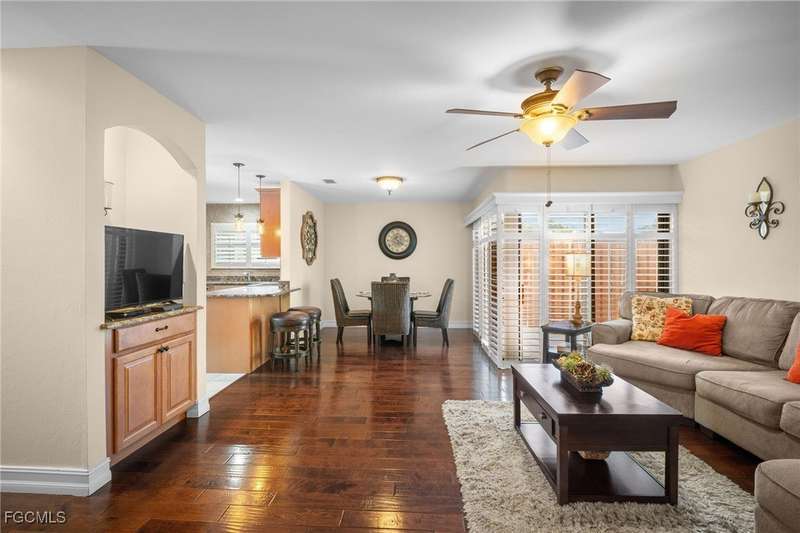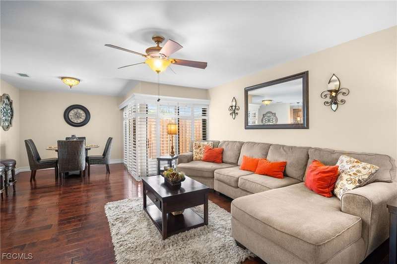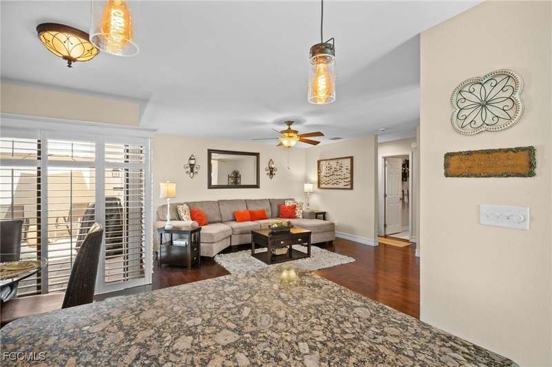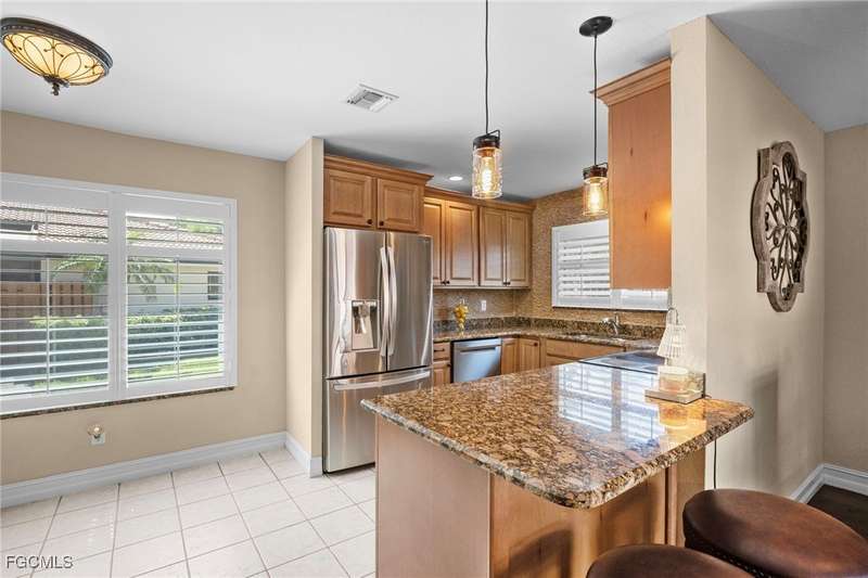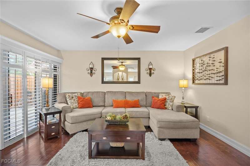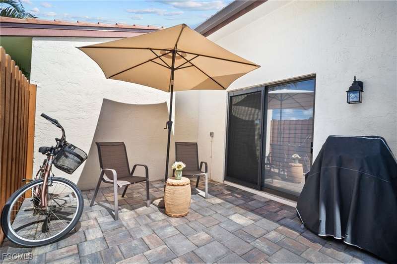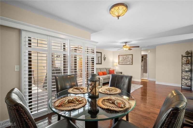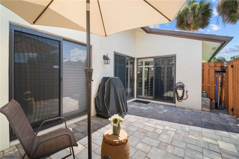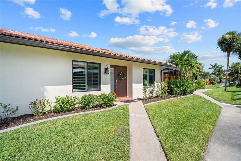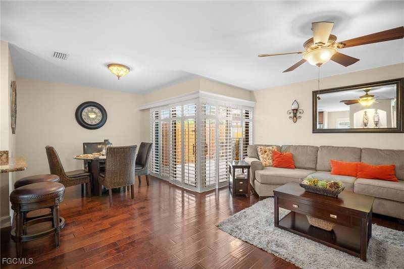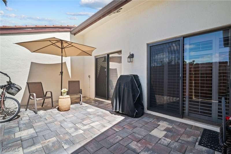 Immaculate Upgraded Villa in a Prime Location! Don't miss this beautifully maintained villa, loaded with high-end upgrades and thoughtful features throughout. From the moment you arrive, you'll notice the charm and quality that make this home truly stand out. Enjoy peace of mind with hurricane-rated windows, a brand-new roof, and classic plantation shutters that add timeless appeal. Step inside to gorgeous wood floors, updated bathrooms, and a chef-inspired kitchen featuring solid wood cabinets, granite countertops, a stylish tile backsplash, and stainless steel appliances-including a new dishwasher (2025). The primary suite offers a walk-in closet with pull-down attic stairs for extra storage and a spa-like bathroom with marble tile, double vanities, and glass shower doors. The second bathroom is equally refined. Enjoy the convenience of an indoor laundry room with a washer new in 2025, plus a built-in desk-perfect for a home office or study nook. Additional upgrades include a hot water heater with Wi-Fi thermostat (2024), offering smart energy efficiency. Outside, unwind on your brick paver patio-ideal for morning coffee or evening get-togethers. This front corner unit is perfectly located just across from the community pool, with two assigned parking spaces and ample guest parking. The neighborhood is Pet friendly, low monthly HOA fee and features sidewalks, streetlights, and underground utilities for added curb appeal and convenience. FLOOD INSURANCE IS NOT REQUIRED. LOW MONTHLY HOA FEES: $250.00. ? Location, location, location! You're just minutes from Cape Coral, Downtown Fort Myers, South Fort Myers, Lehigh Acres, top-rated schools, shopping, dining, and entertainment. This villa checks every box-schedule your showing today before it's gone!