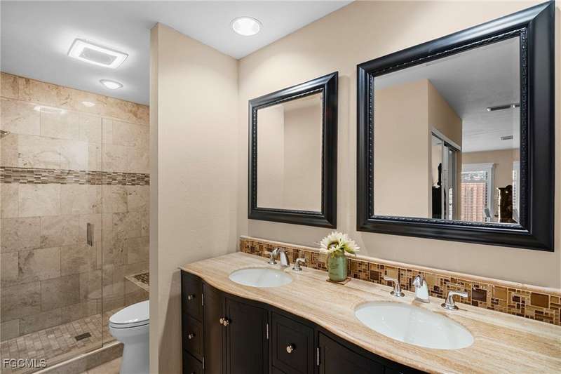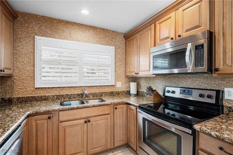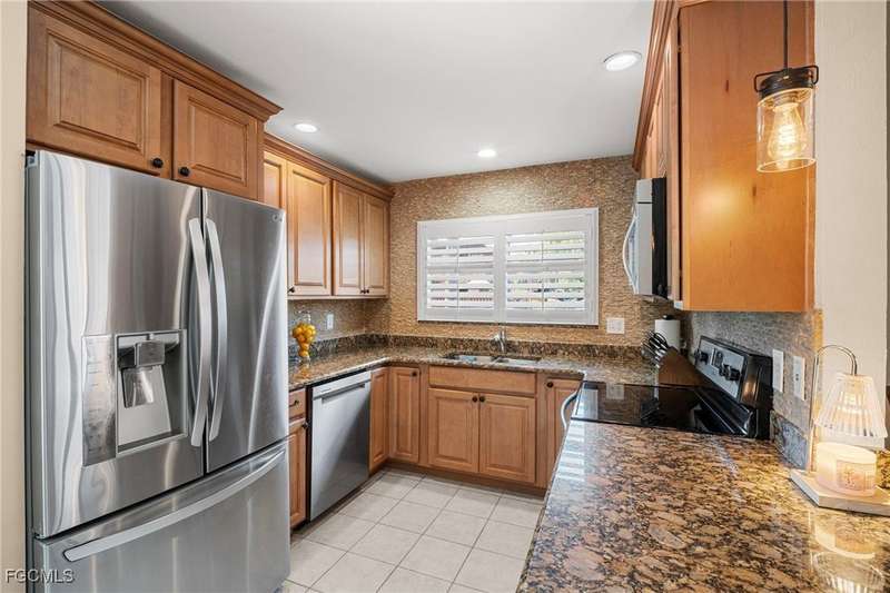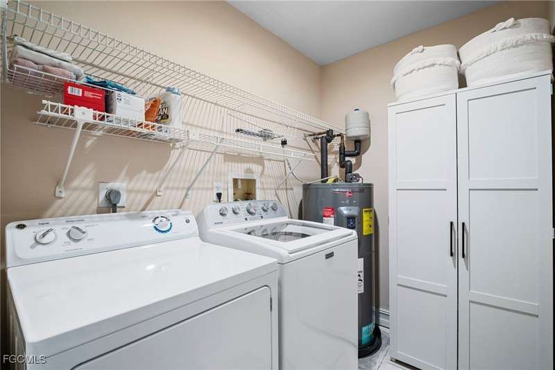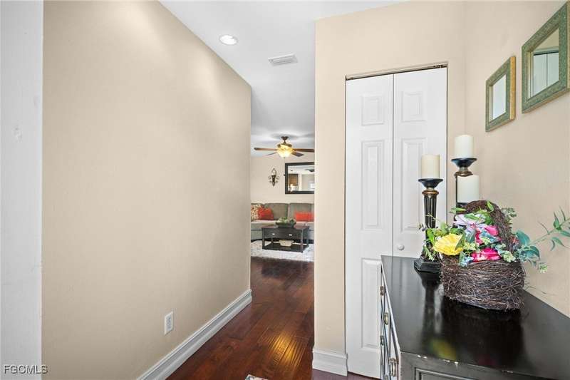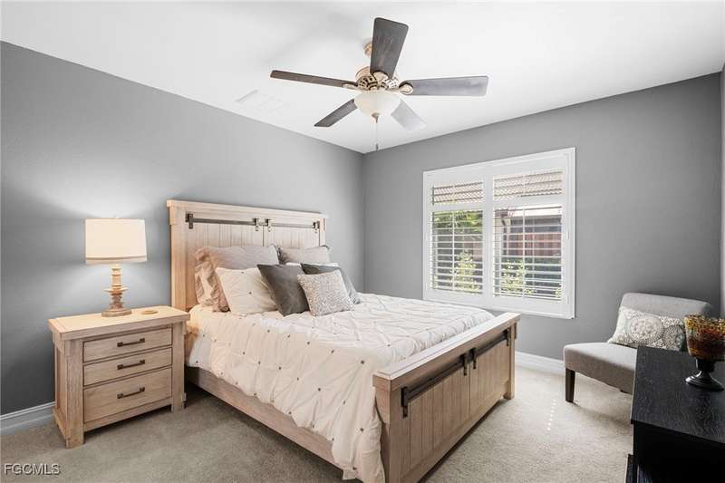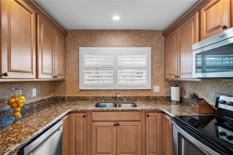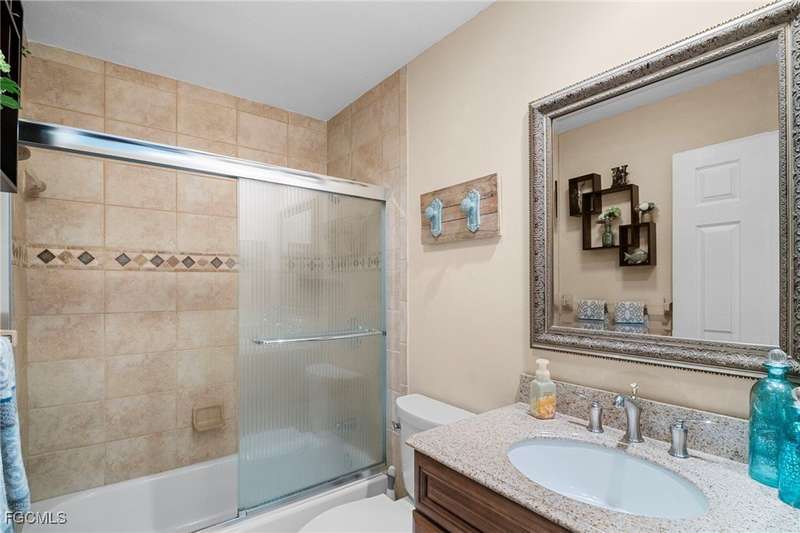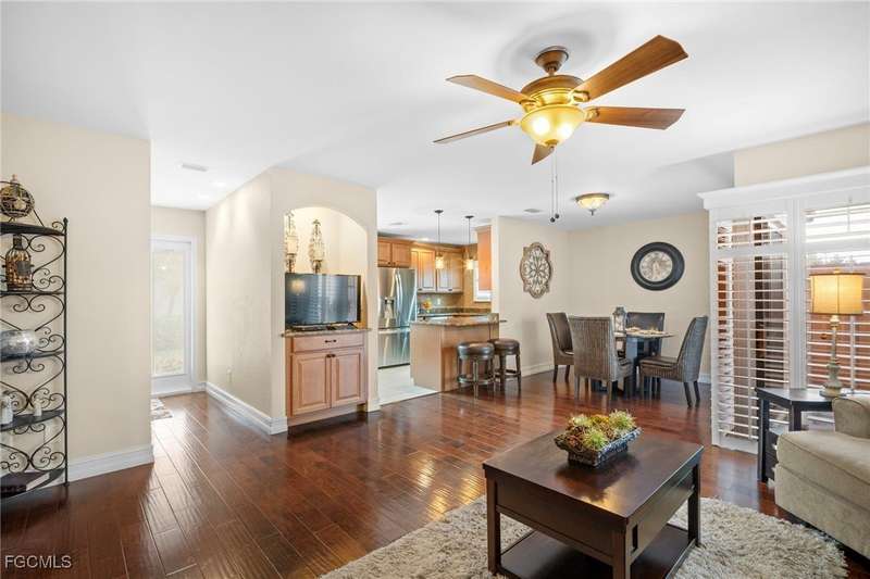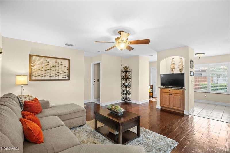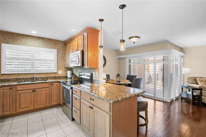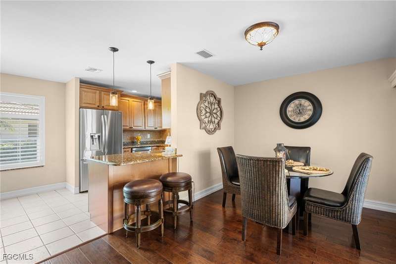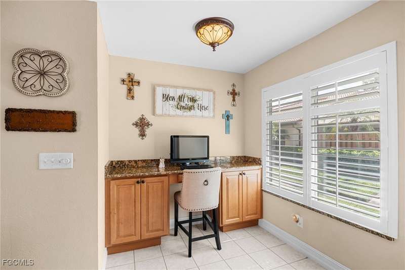 Immaculate Upgraded Villa in a Prime Location! Don't miss this beautifully maintained villa, loaded with high-end upgrades and thoughtful features throughout. From the moment you arrive, you'll notice the charm and quality that make this home truly stand out. Enjoy peace of mind with hurricane-rated windows, a brand-new roof, and classic plantation shutters that add timeless appeal. Step inside to gorgeous wood floors, updated bathrooms, and a chef-inspired kitchen featuring solid wood cabinets, granite countertops, a stylish tile backsplash, and stainless steel appliances-including a new dishwasher (2025). The primary suite offers a walk-in closet with pull-down attic stairs for extra storage and a spa-like bathroom with marble tile, double vanities, and glass shower doors. The second bathroom is equally refined. Enjoy the convenience of an indoor laundry room with a washer new in 2025, plus a built-in desk-perfect for a home office or study nook. Additional upgrades include a hot water heater with Wi-Fi thermostat (2024), offering smart energy efficiency. Outside, unwind on your brick paver patio-ideal for morning coffee or evening get-togethers. This front corner unit is perfectly located just across from the community pool, with two assigned parking spaces and ample guest parking. The neighborhood is Pet friendly, low monthly HOA fee and features sidewalks, streetlights, and underground utilities for added curb appeal and convenience. FLOOD INSURANCE IS NOT REQUIRED. LOW MONTHLY HOA FEES: $250.00. ? Location, location, location! You're just minutes from Cape Coral, Downtown Fort Myers, South Fort Myers, Lehigh Acres, top-rated schools, shopping, dining, and entertainment. This villa checks every box-schedule your showing today before it's gone!