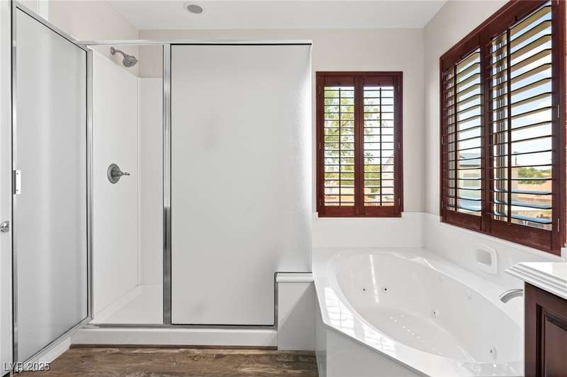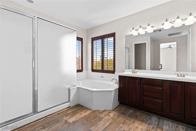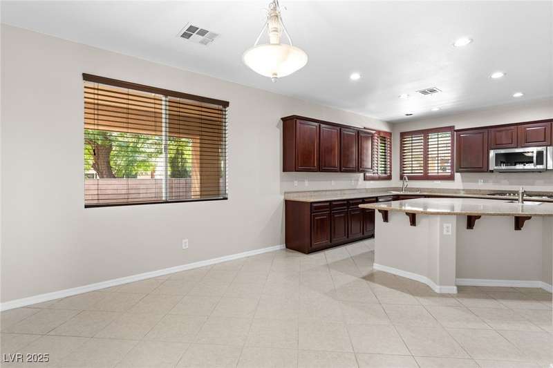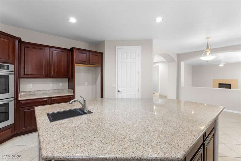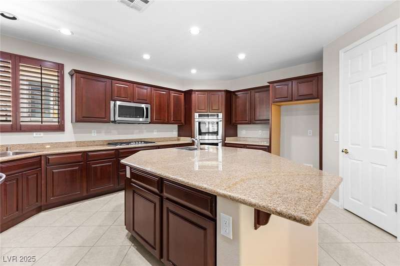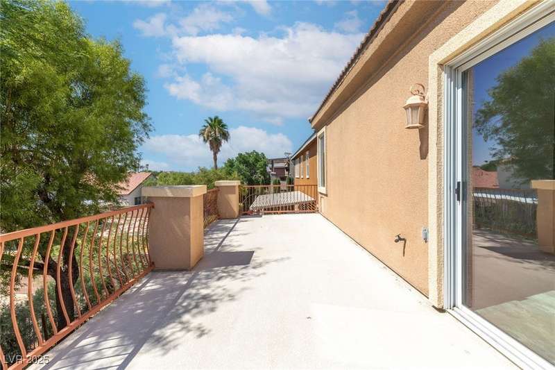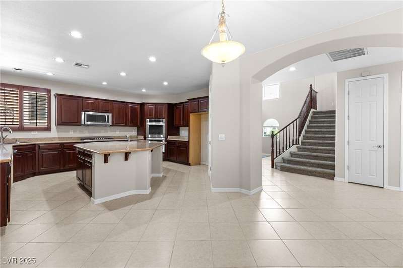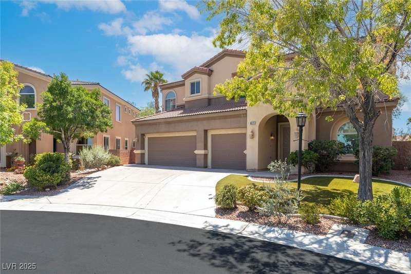 Step into this 5 bedroom home with a grand entrance featuring vaulted ceilings and a stunning open staircase! The formal living and dining areas offer plenty of space for hosting guests in style. The entertainer’s kitchen is a dream — complete with granite countertops, espresso cabinetry, and a spacious island with a prep sink. Step outside to your own private retreat featuring a sparkling pool with a tranquil waterfall, and a putting green for fun and practice. An additional custom outdoor fireplace sets the mood for relaxing evenings. Downstairs you'll find a desirable ensuite bedroom with a private bath, plus a convenient half bath for guests. Upstairs, the primary suite feels like a resort getaway with its large walk-in shower, jetted soaking tub, and dual vanities. A spacious upstairs loft offers endless possibilities — home office, game room, fitness area — you name it. Nestled in an exclusive gated community, this stunning home is sure to exceed your expectations!