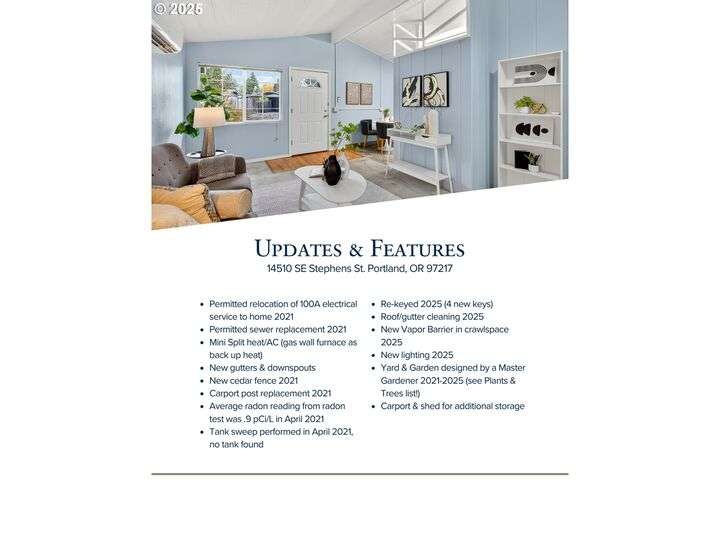 Small but mighty! This 1952 Centennial ranch has 2 beds, 1 bath, and one-level living with minimal stairs. The oversized .15-acre lot is a gardener’s paradise, designed by a master gardener and ready for your green thumb. Fresh paint, new lighting, and mini-split heat/AC give a modern touch, while a carport with storage adds practicality. Simple and full of potential, this home is a blank canvas for your ideas, and a rare entry-level opportunity in Portland. [Home Energy Score = 7. HES Report at https://rpt.greenbuildingregistry.com/hes/OR10242437]