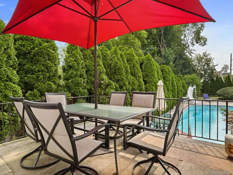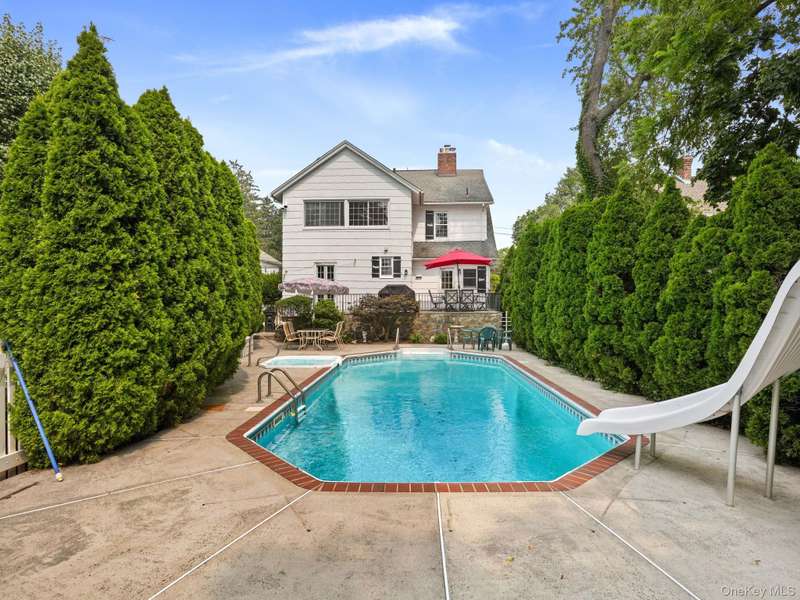 Charming Dutch Colonial nestled on a tree-lined street in the desirable Station Park neighborhood. A welcoming front porch sets the tone for this character-filled home featuring a gracious entry foyer, front-to-back living room with stone fireplace and French doors to patio. The formal dining room offers a second fireplace, while the kitchen includes a separate breakfast room with direct patio access. Enjoy outdoor entertaining with the heated in-ground pool and spa. Upstairs you'll find the primary bedroom, three additional bedrooms, a full hall bath and a versatile bonus space; sun/play room or office. A walk-up attic provides generous storage and potential for future expansion. Walk-out lower level offers additional storage. Detached 2-car garage. Fabulous location with easy access from backyard to RR, library, park, shops and sought-after Harrison Avenue School.
